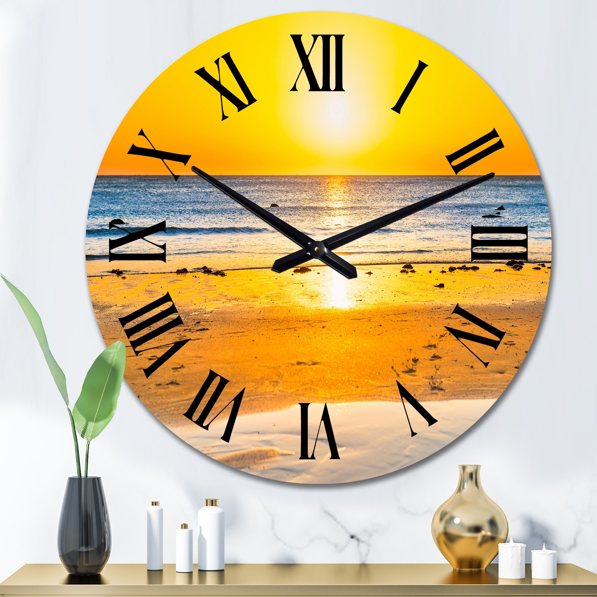 Designart 'Sunset On Beautiful Sand Beach With Blue Sea Water' Nautical & Coastal wall clock