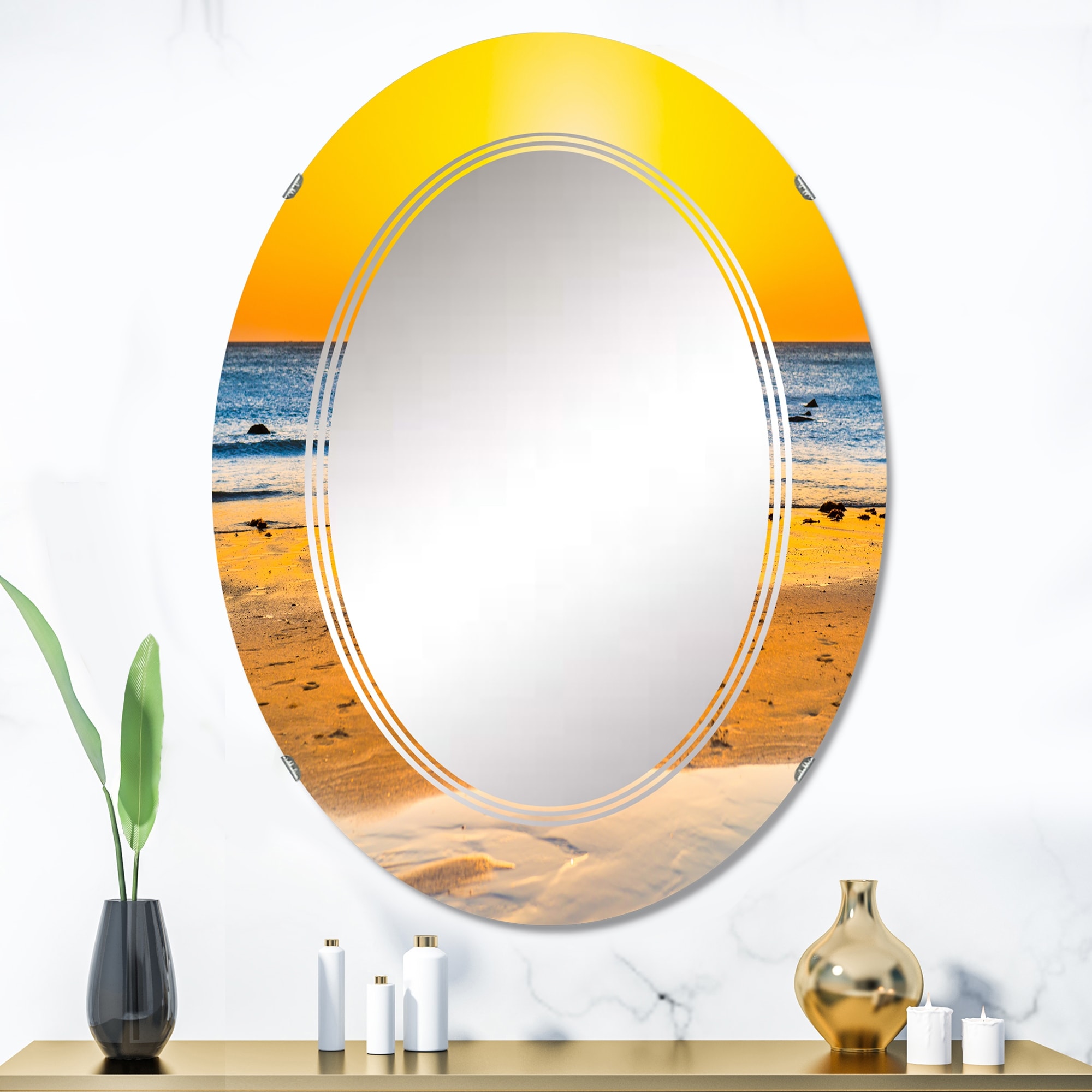 Designart 'Sunset On Beautiful Sand Beach With Blue Sea Water' Nautical & Coastal Printed Wall Mirror