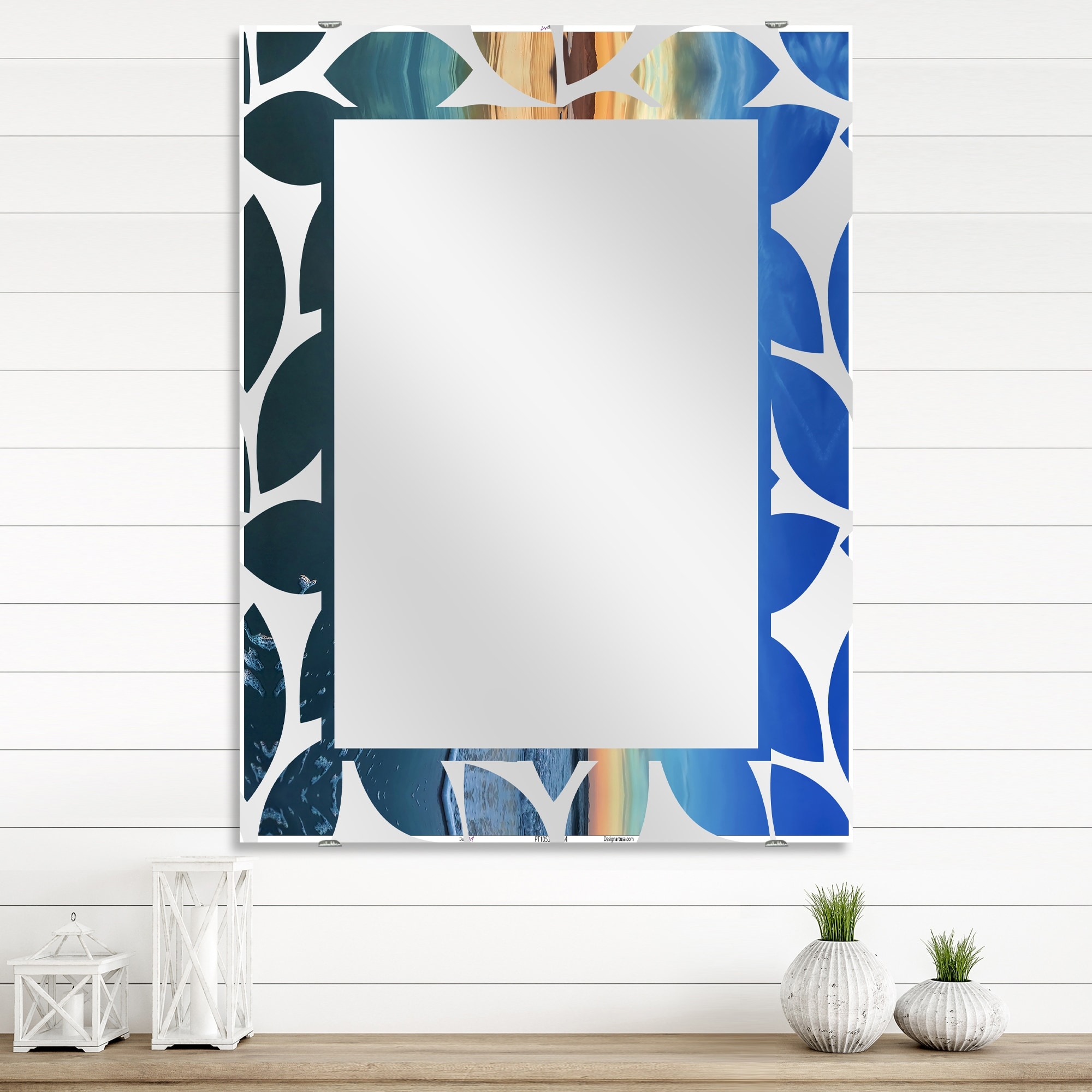 Designart 'Blue Seashore with Distant Sunset' Sea & Shore Printed Wall Mirror