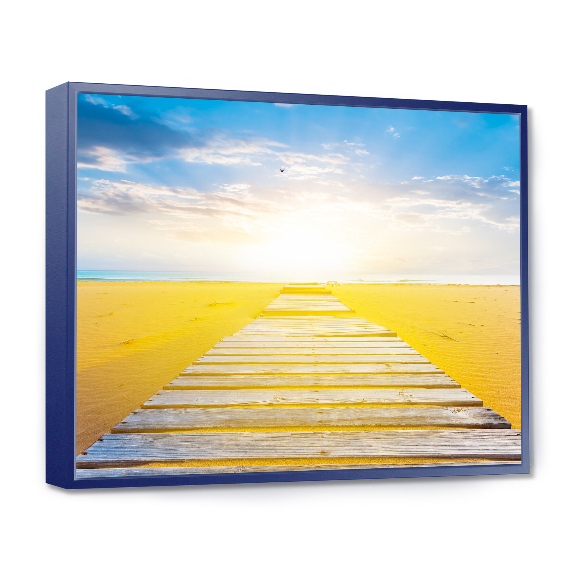 Designart "Wooden Road at Blue Sea Beach" Sea Bridge Framed Canvas Art Print