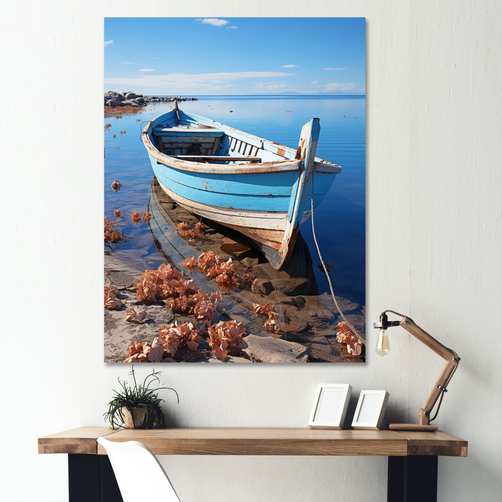 Designart "Blue Boat Serenity II" Boat Wall Art Prints