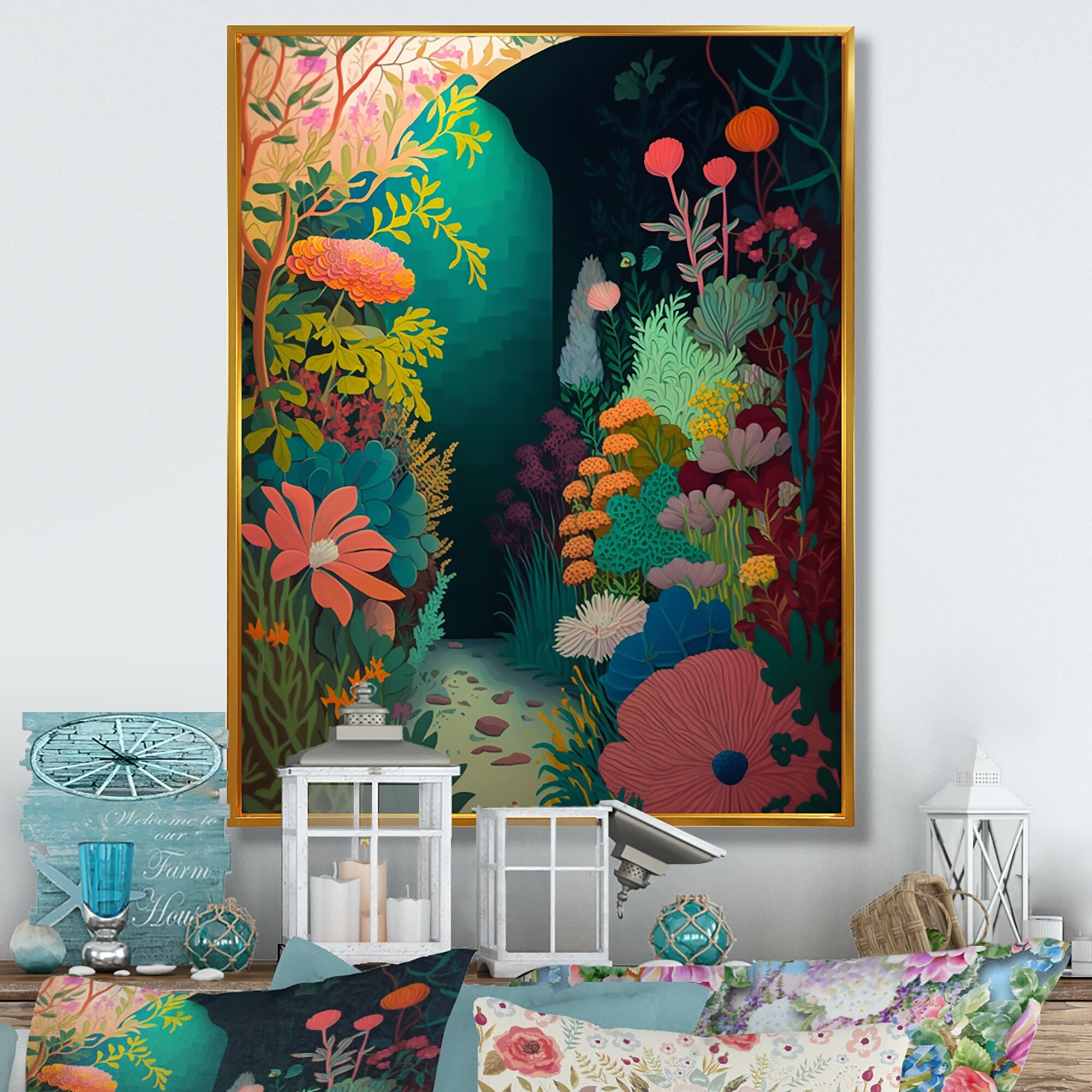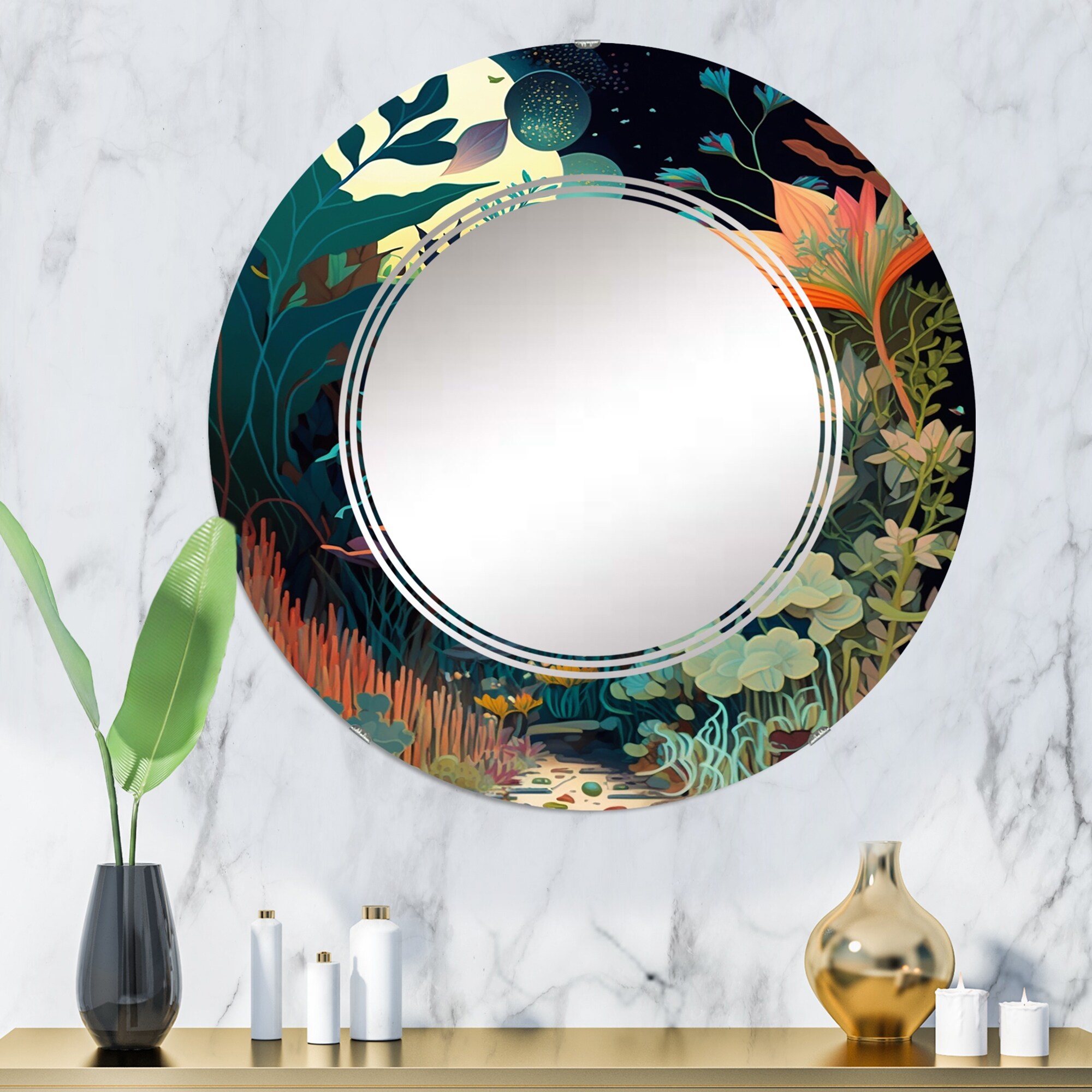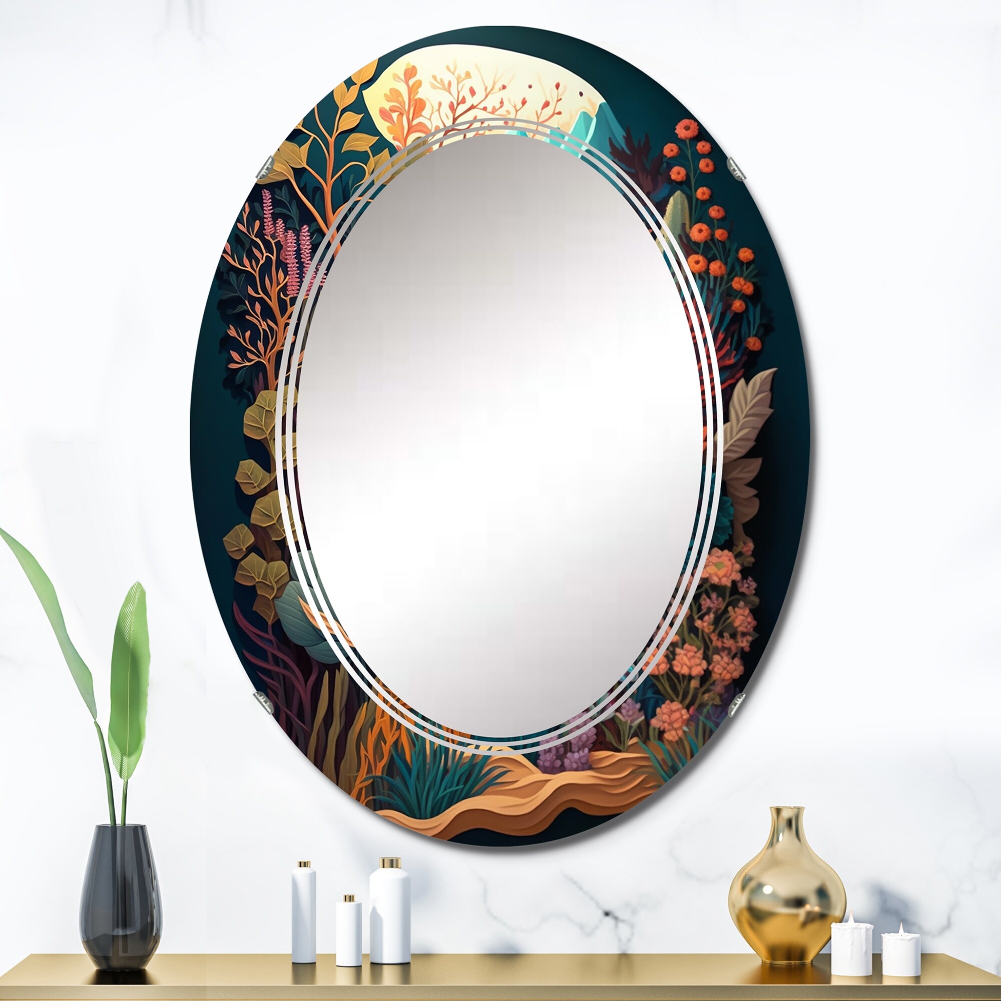 Designart 'Bounties And Blooming Wilderness Blessings IV' Printed Coastal Wall Mirror