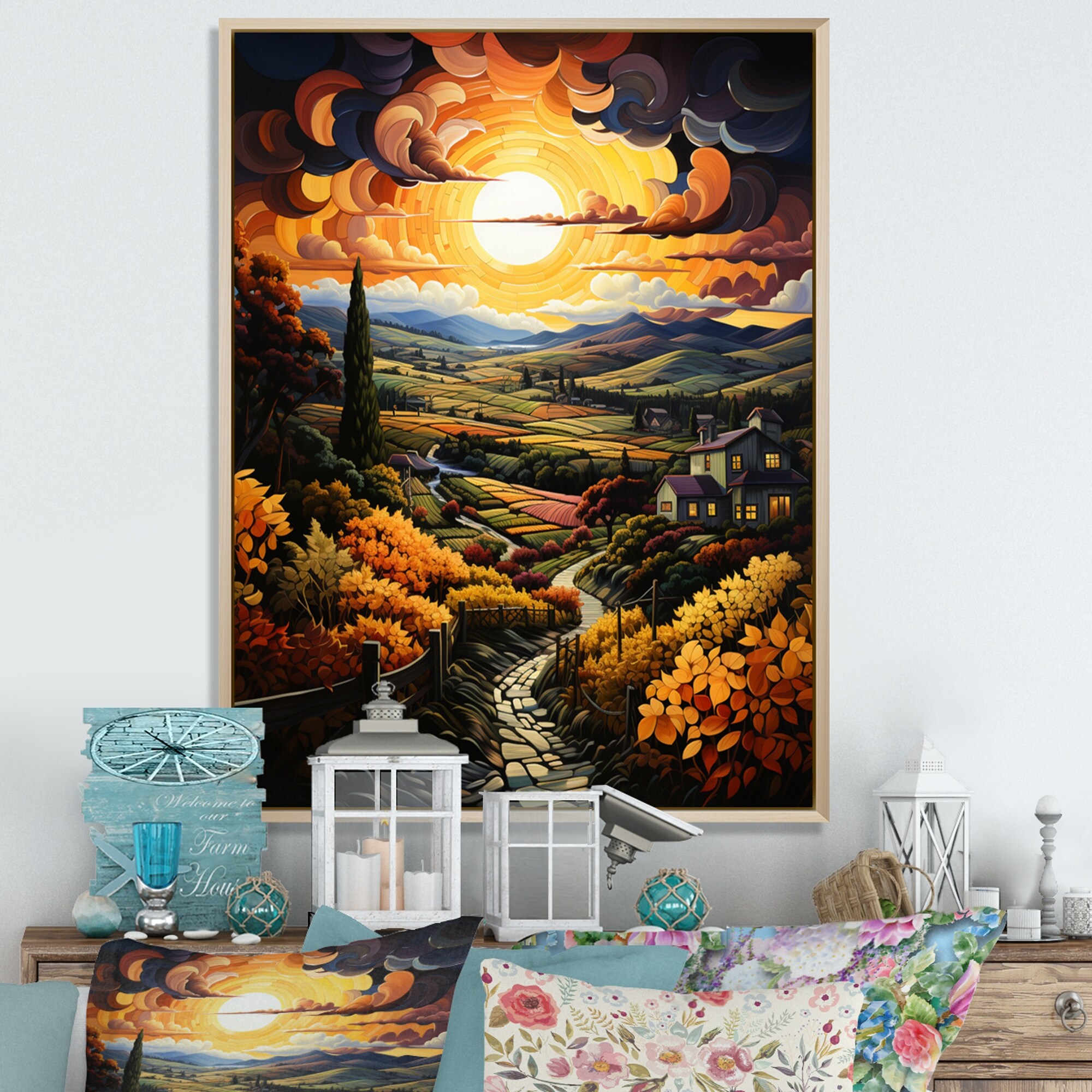 Designart "Countryside Bountiful Vineyard Patchwork II" Countryside Framed Wall Art Living Room