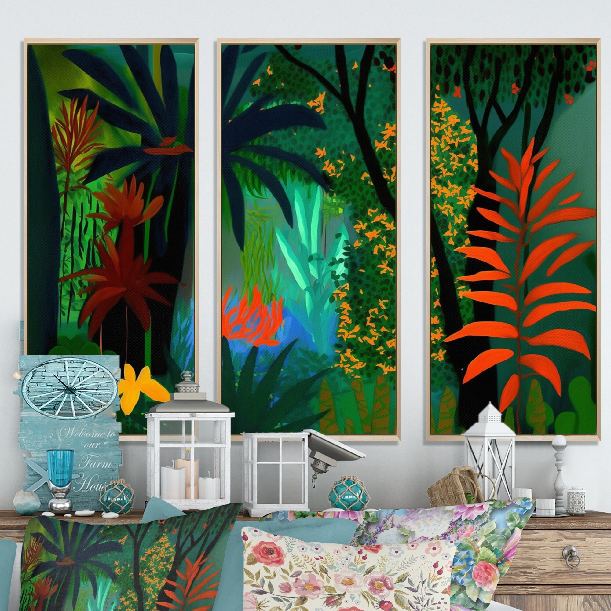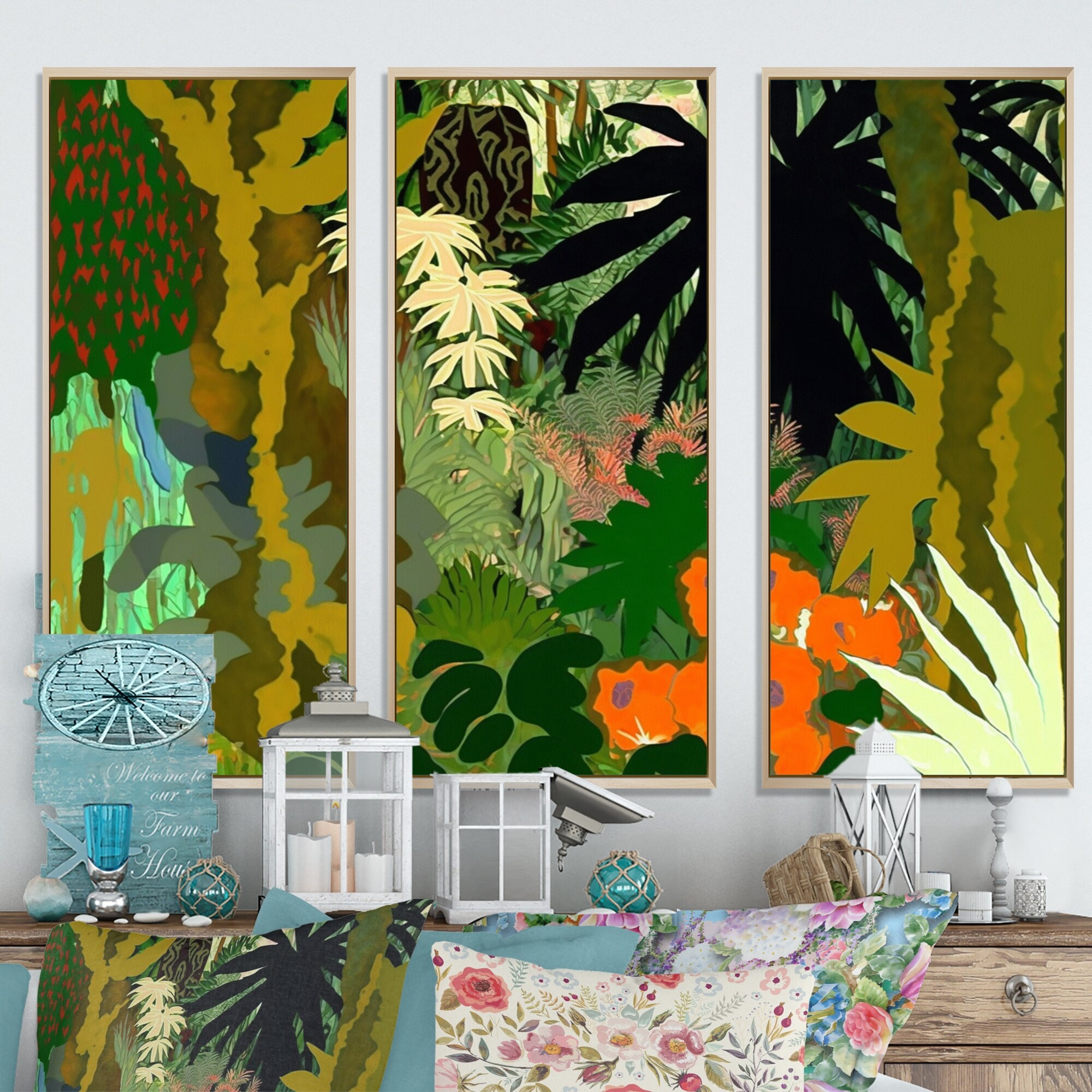 Designart "Bounties And Blooming Wilderness Blessings I" Floral & Botanical Framed Canvas Wall Art Print - 3 Panels