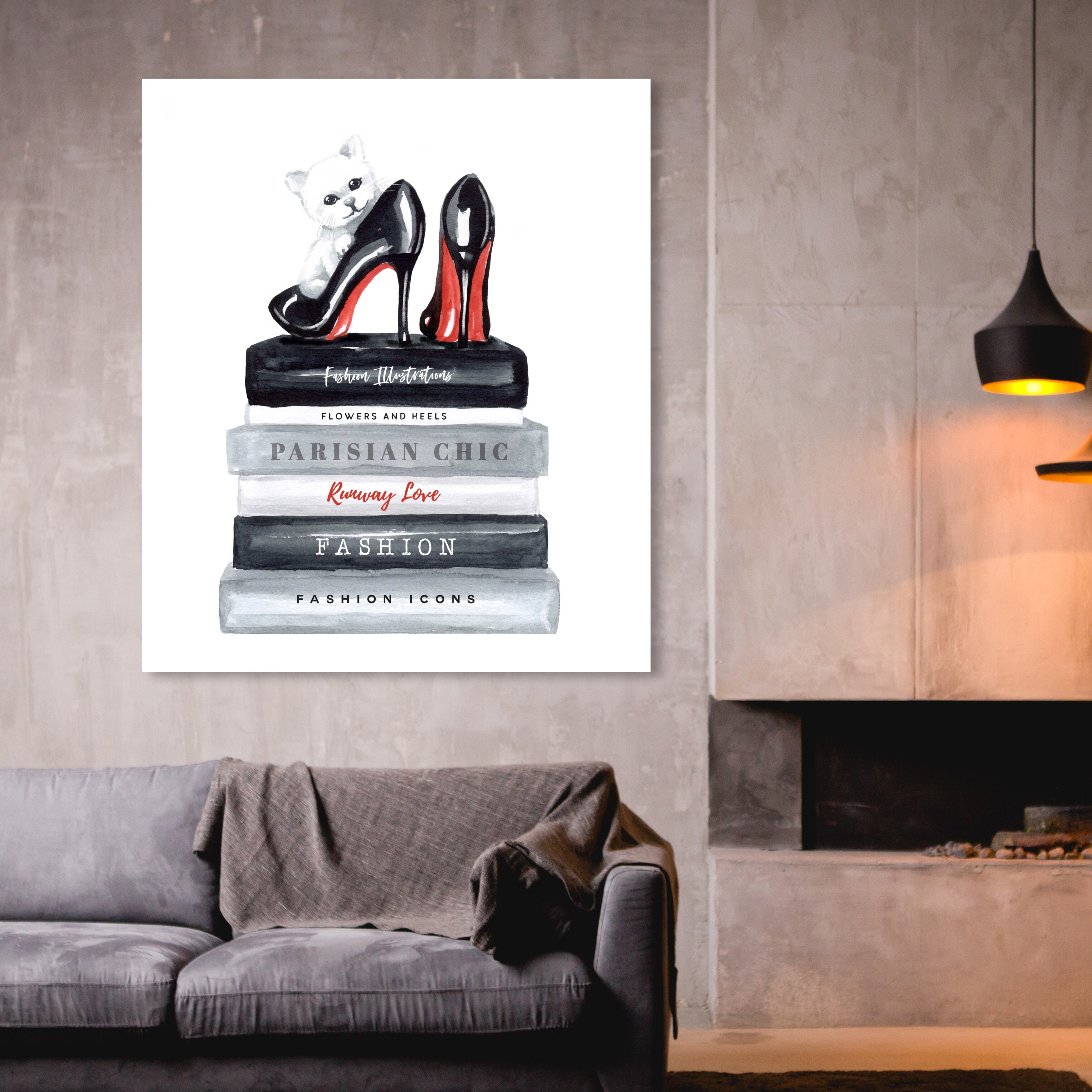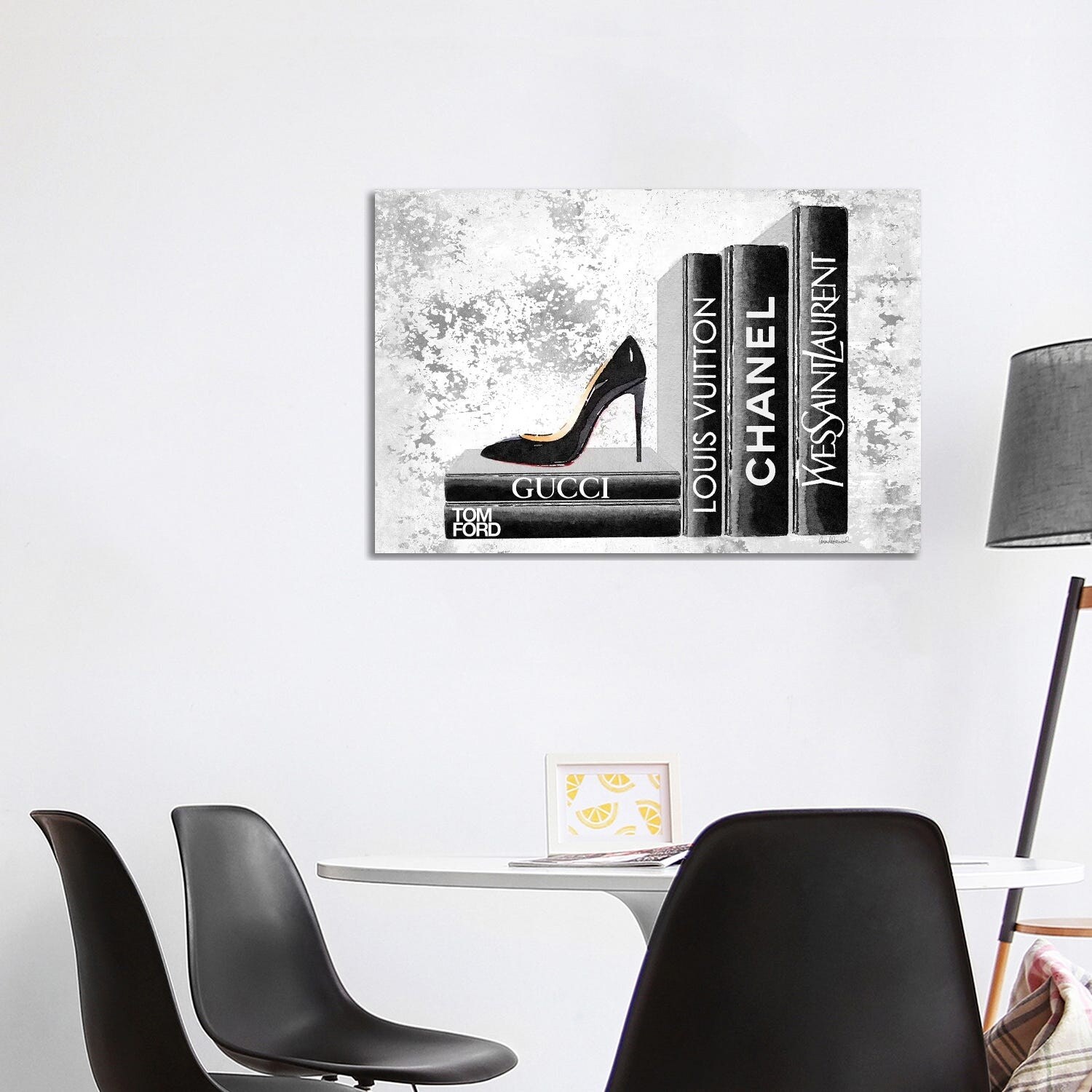 iCanvas "Books Of Fashion, Grey, Shoes, Grey Grunge" by Amanda Greenwood Framed Canvas Print