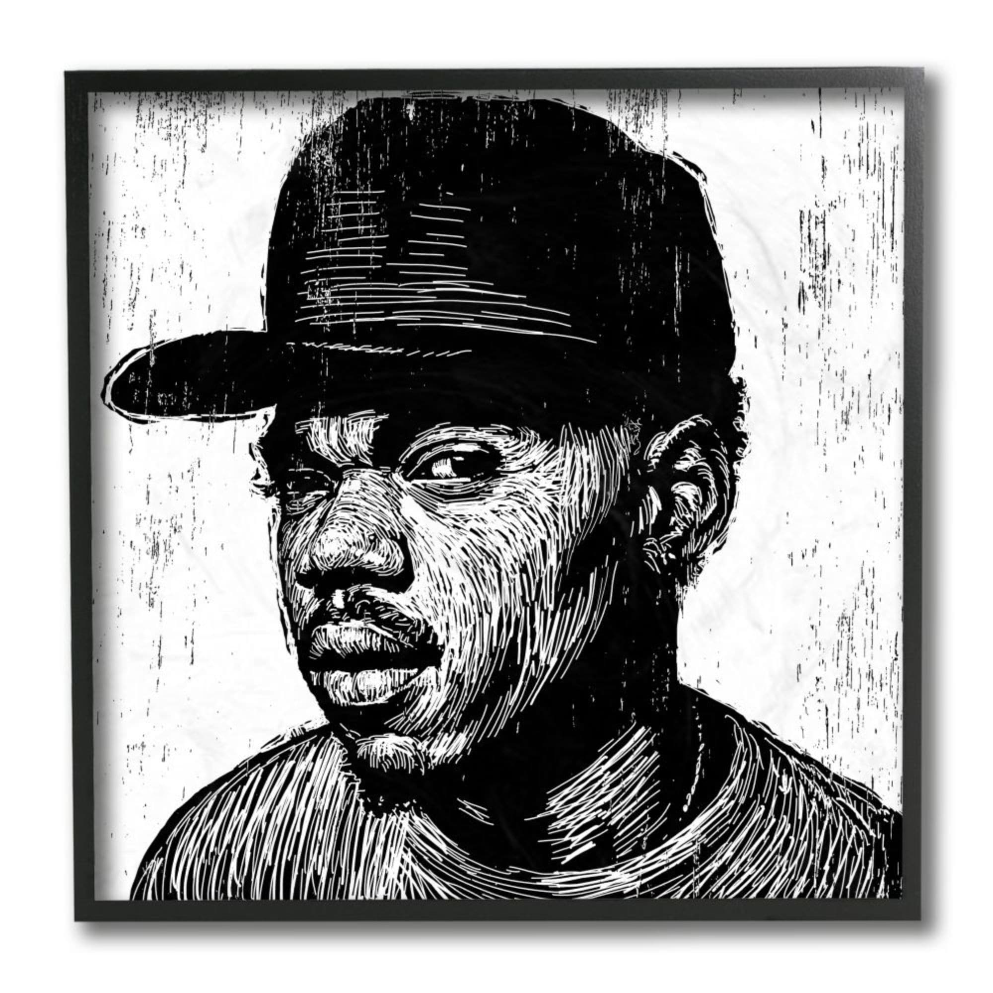 Stupell Industries Chance the Rapper Etched Black White Portrait Framed Wall Art