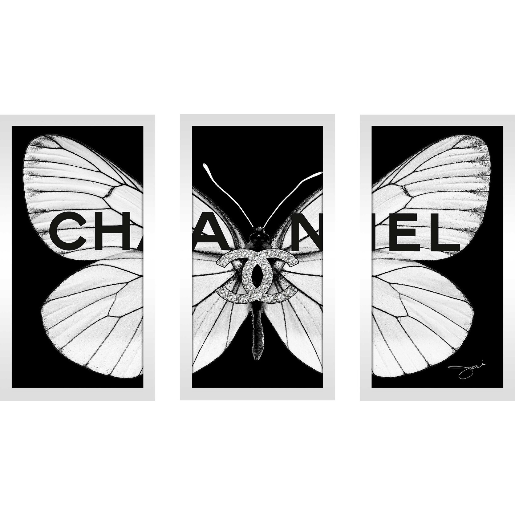 "Chanel White Butterfly" 3 Piece Print on Acrylic