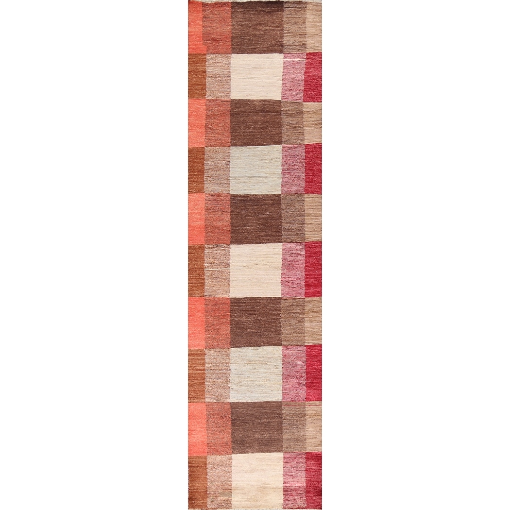 Checkered Gabbeh Kashkoli Oriental Runner Rug Hand-knotted Wool Carpet - 3'1" x 9'4"