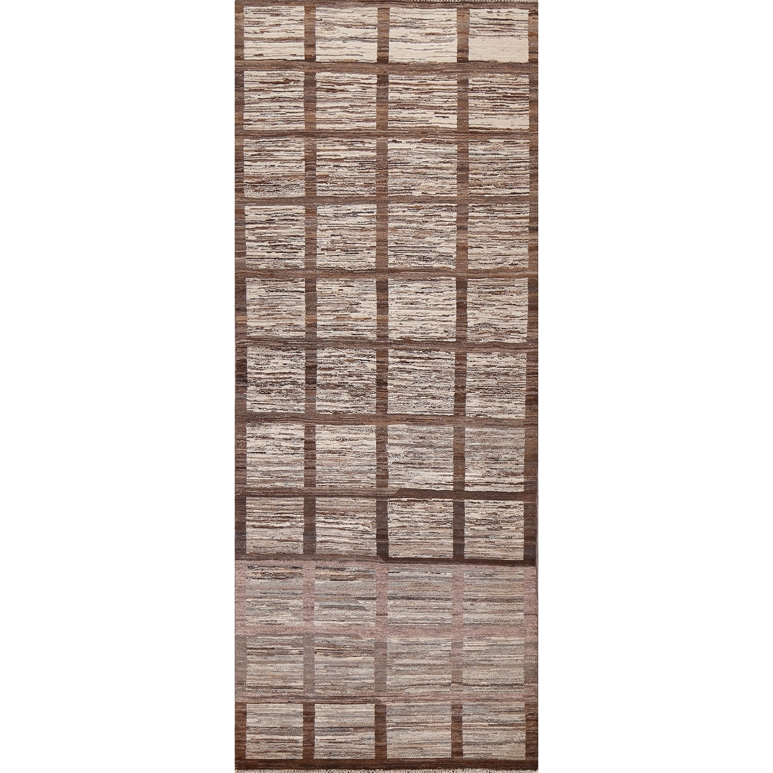 Checkered Contemporary Moroccan Oriental Runner Rug Wool Hand-knotted - 2'7" x 7'9"
