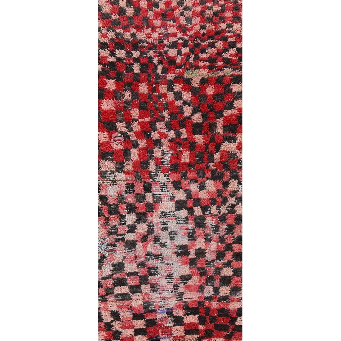 Vintage Checkered Moroccan Berber Runner Rug Hand-knotted Wool Carpet - 2'4" x 8'1"