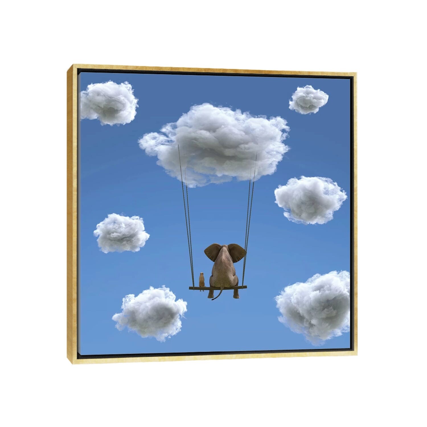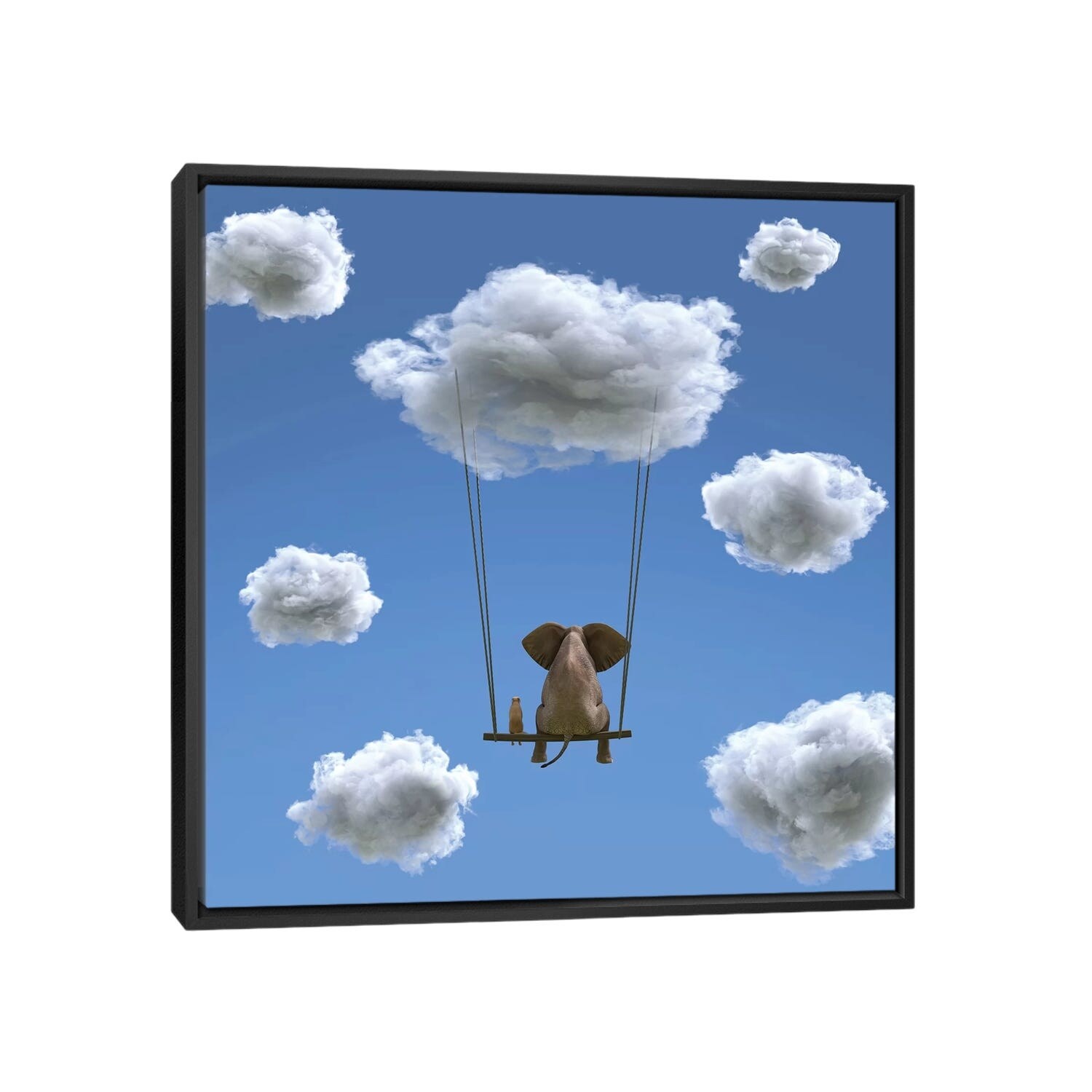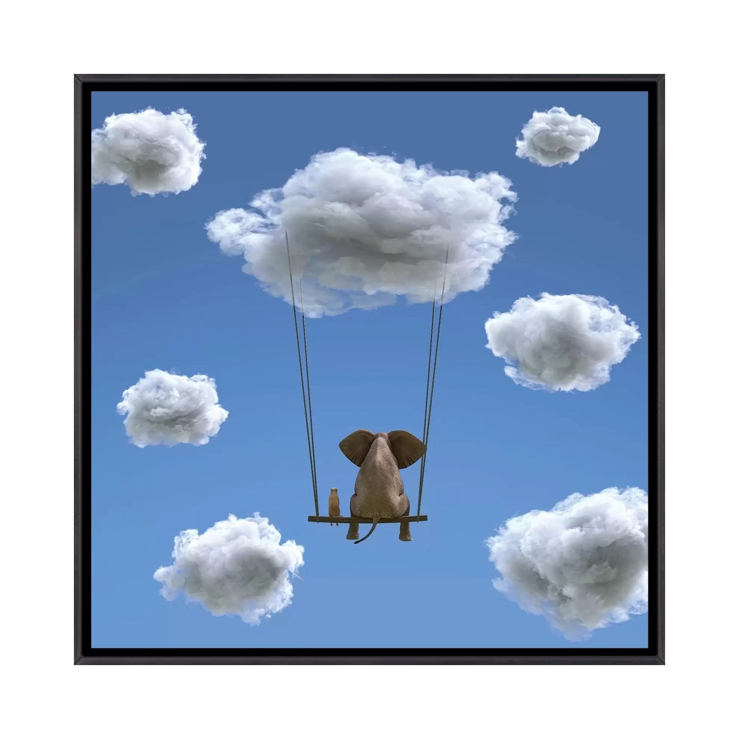 iCanvas "Elephant And Dog Are Flying on A Cloud II" by Mike Kiev Framed Canvas Print