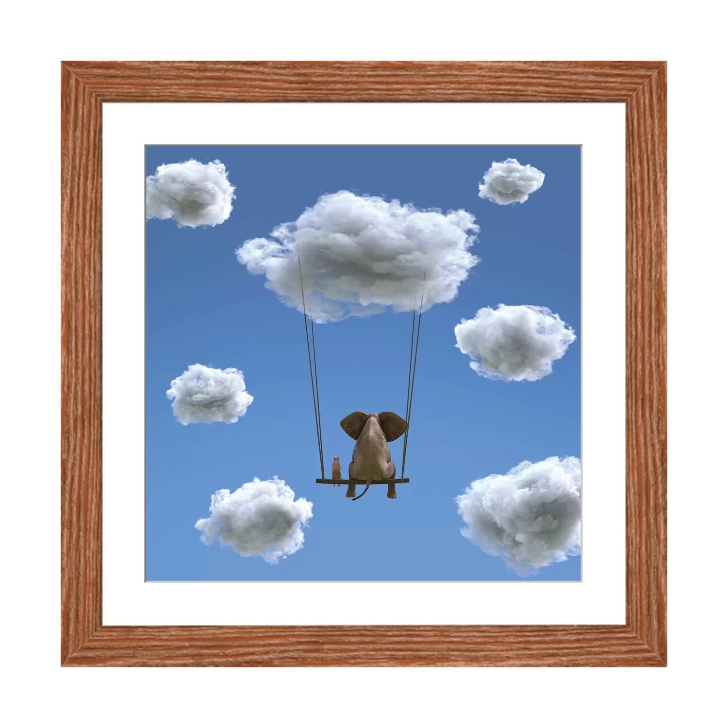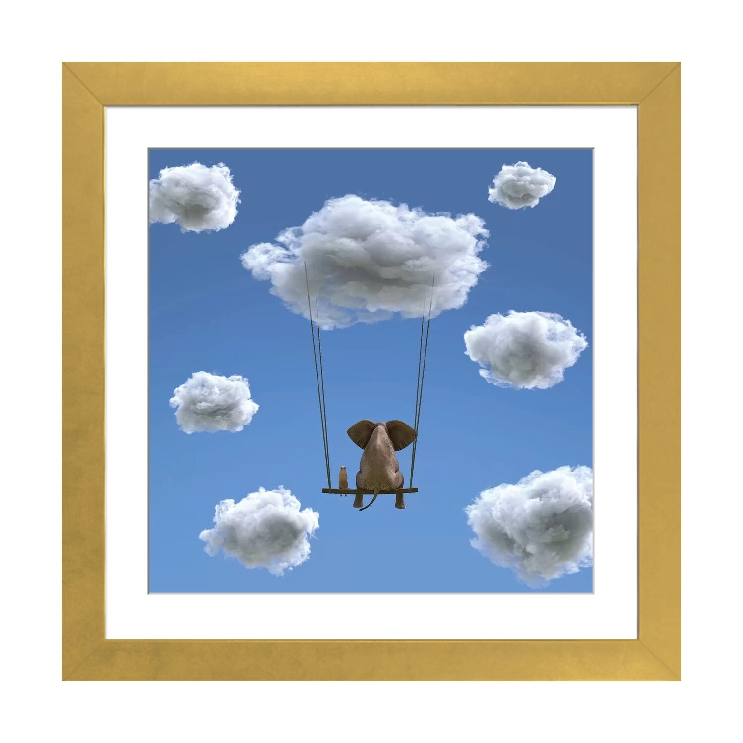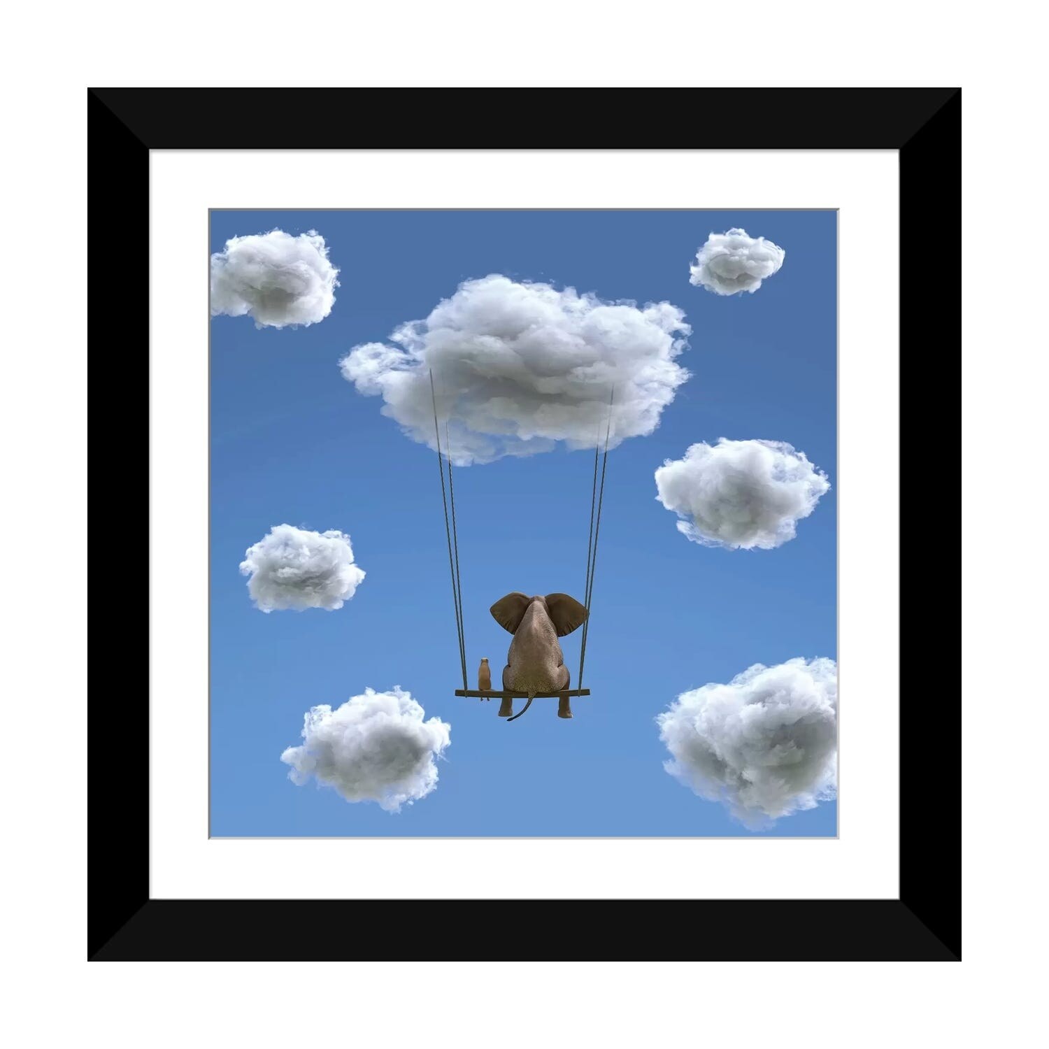 iCanvas "Elephant And Dog Are Flying on A Cloud II" by Mike Kiev Framed Canvas Print