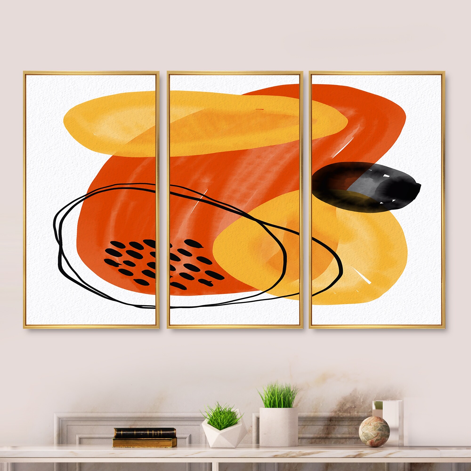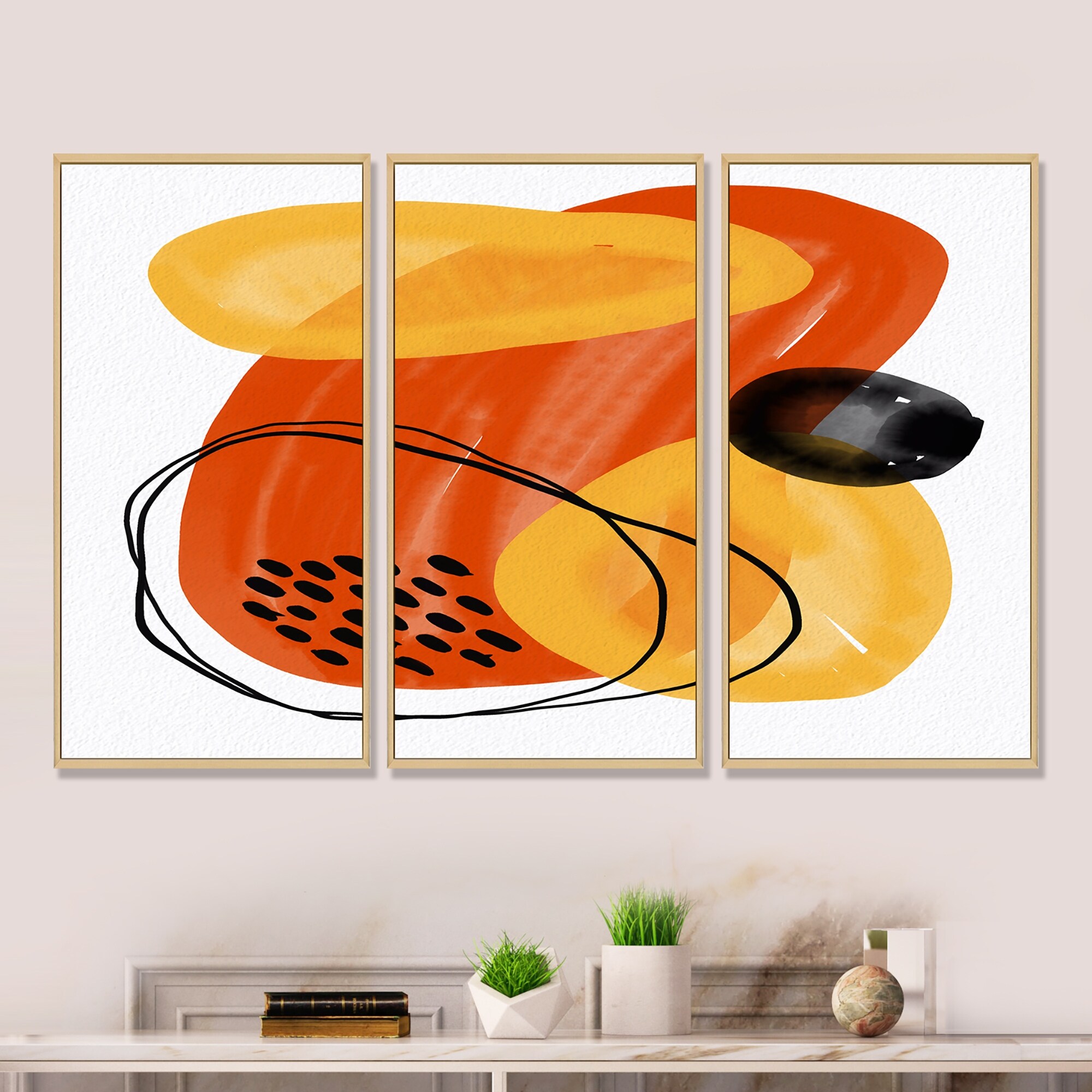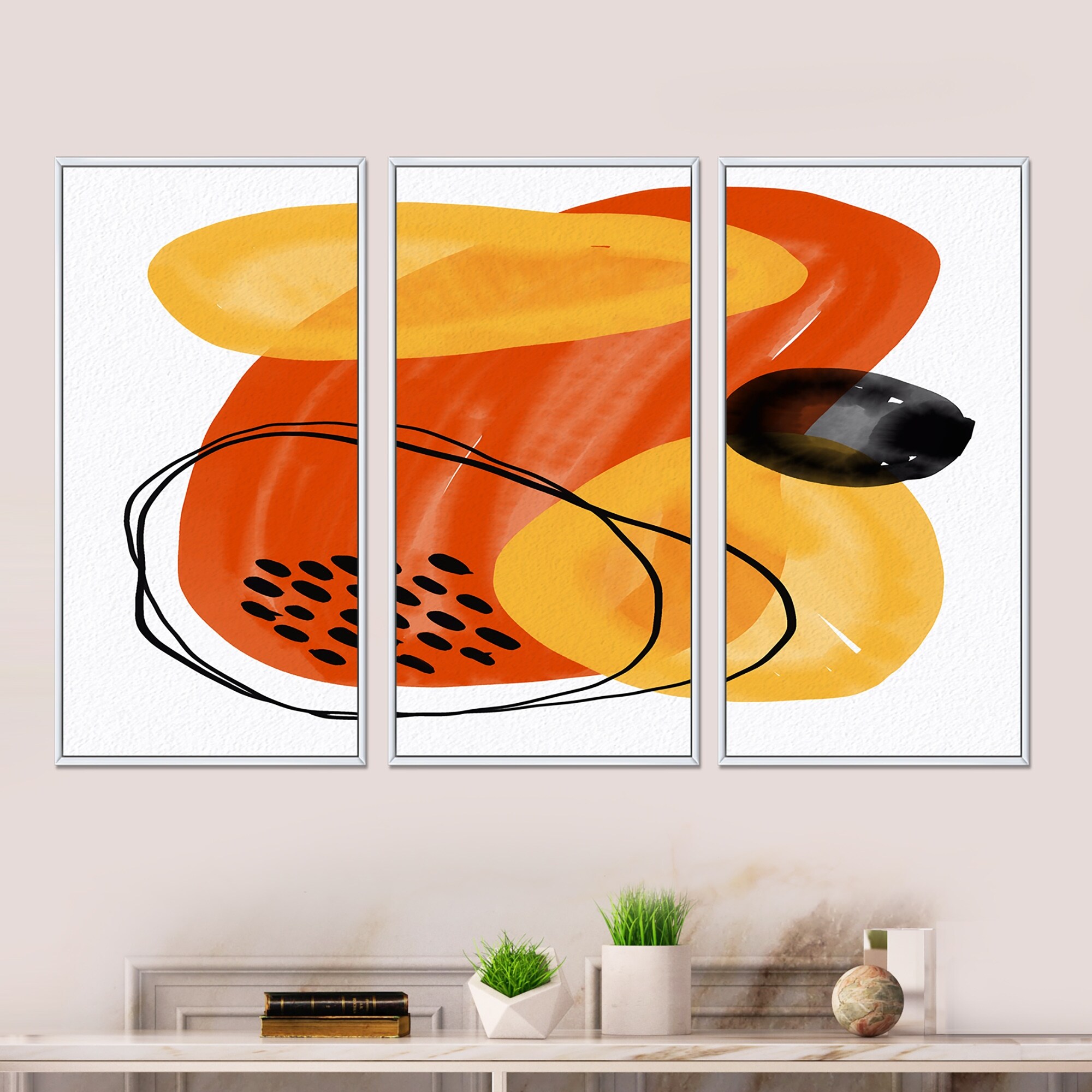 Designart "Minimal Abstract Shapes With Polka Dot Cloud II" Modern Framed Wall Art Set of 3 - 4 Colors of Frames