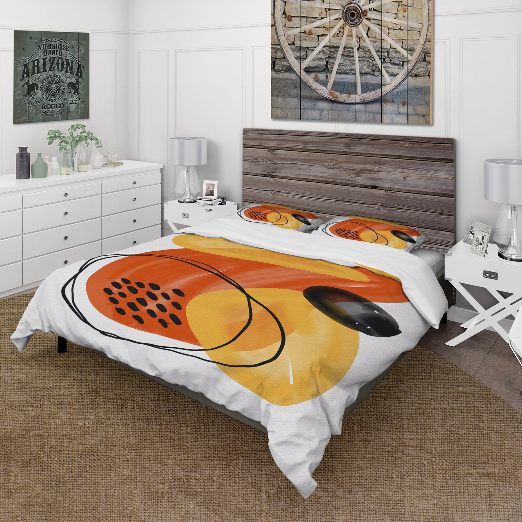 Designart 'Minimal Abstract Shapes With Polka Dot Cloud II' Modern Duvet Cover Set