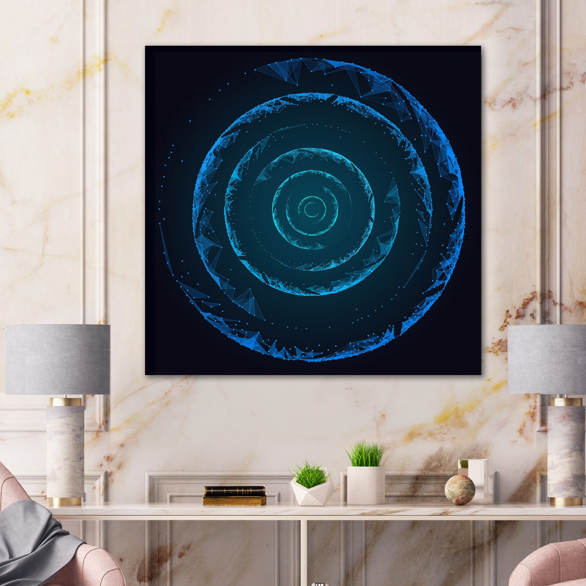 Designart "Blue Concentric Spiral on Black" Modern Canvas Wall Art Print