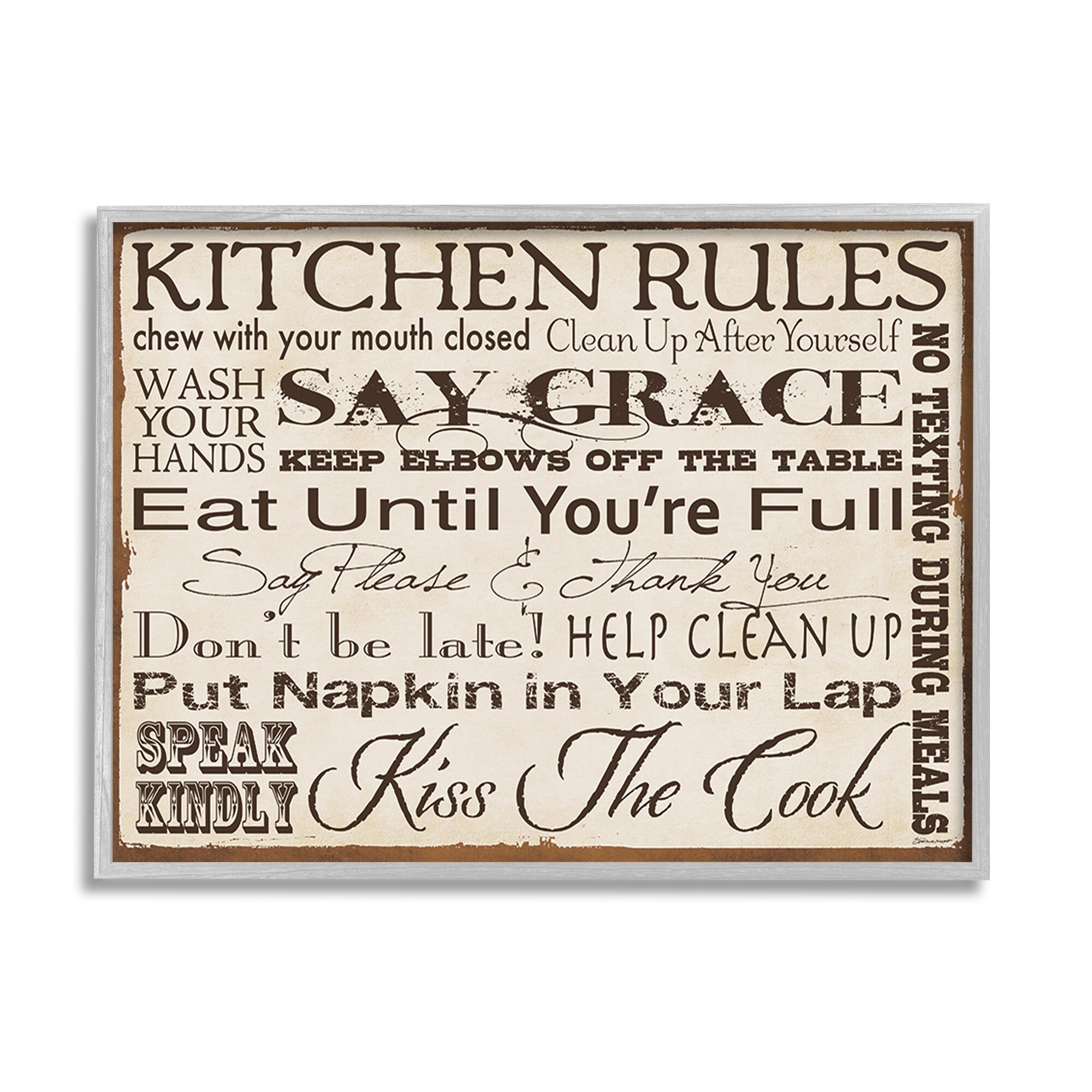 Stupell Rules Creme Typography Kitchen Wall Art Grey Framed, 11 x 14, Proudly Made in USA - 11 x 14