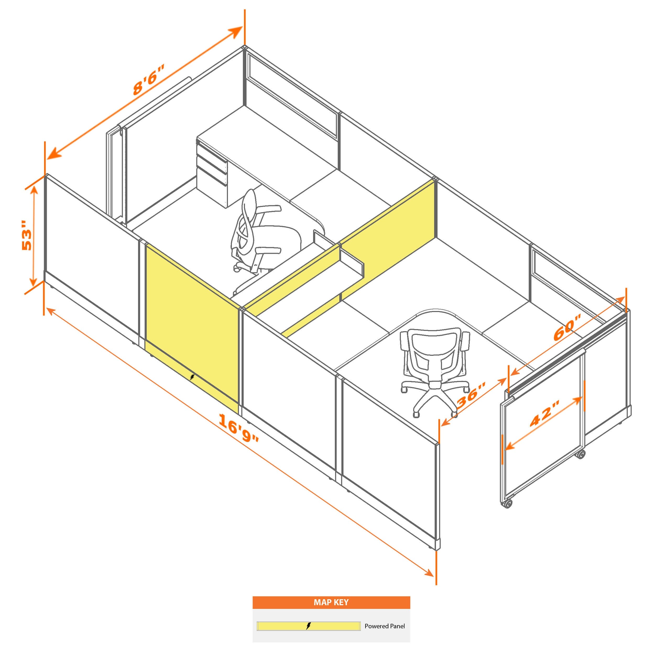 Cubicles with Sliding Doors 53H 2pack Cluster