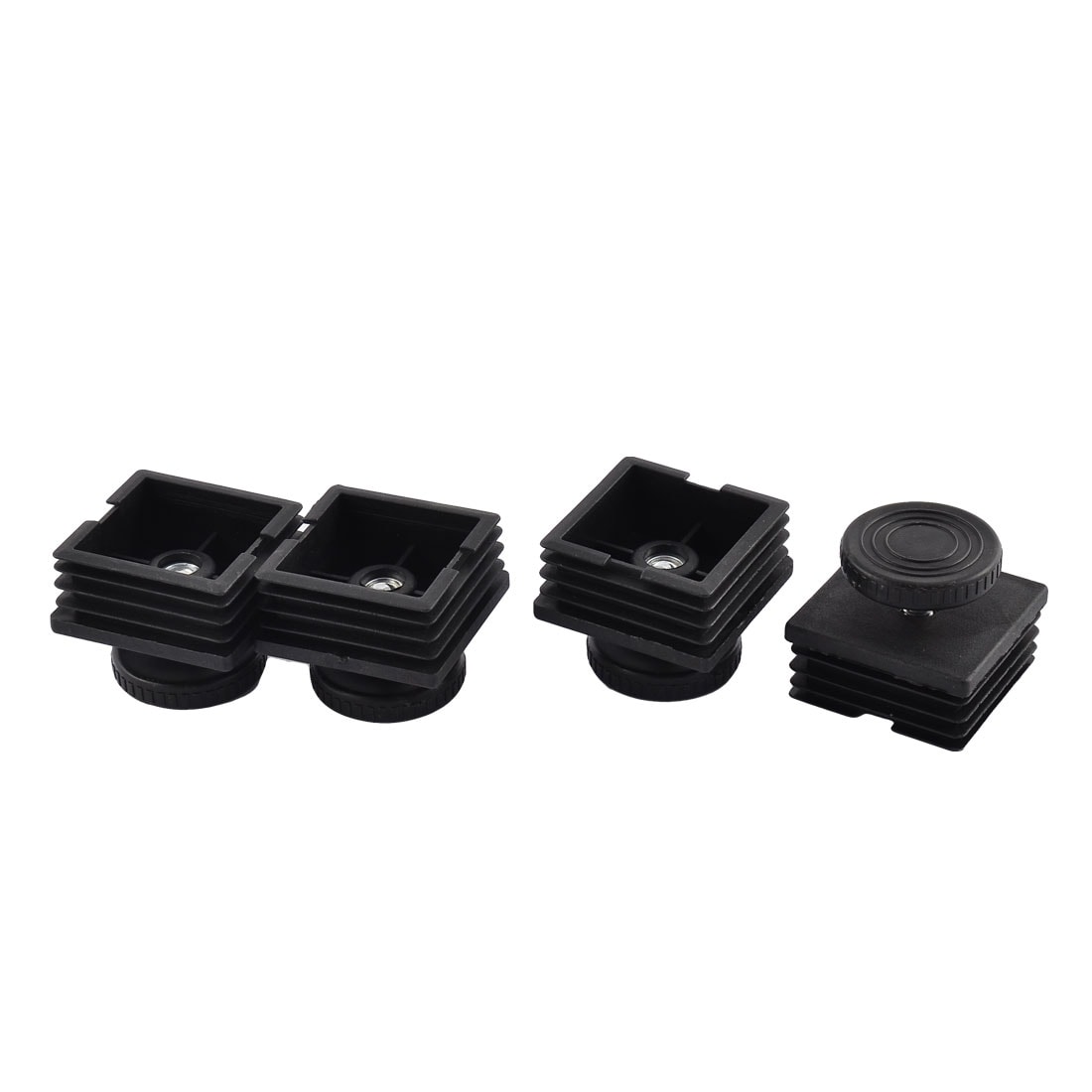 4 Sets Antislip Plastic Square 48x48mm Furniture Leg Protector - Black,Silver Tone - 1.6" x 1.1" (D*H)