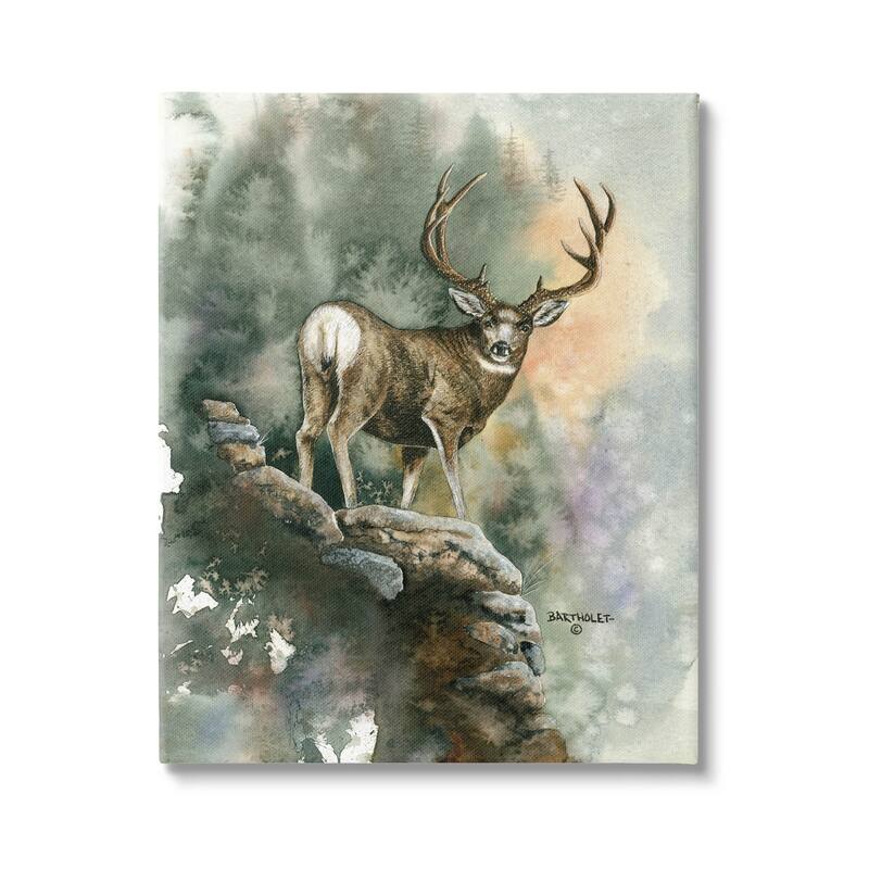 Stupell Industries Deer Rocky Woodland Cliff Canvas Wall Art by Dave Bartholet