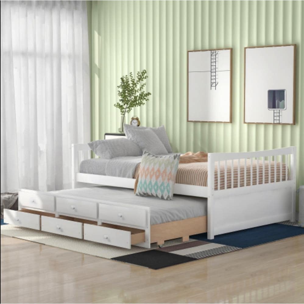 Twin Wooden Daybed with Trundle and Storage Drawers