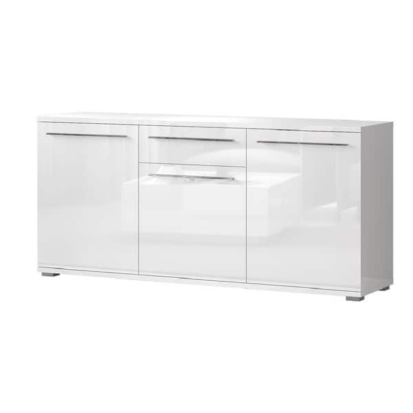 Piano Large Lacquered Sideboard, 3 Cabinets 1 Drawer, White