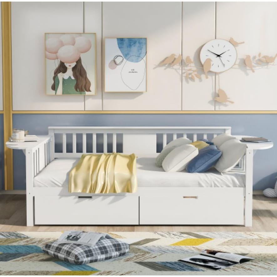 Wood Slat Support twin size Daybed with Two Drawers in White