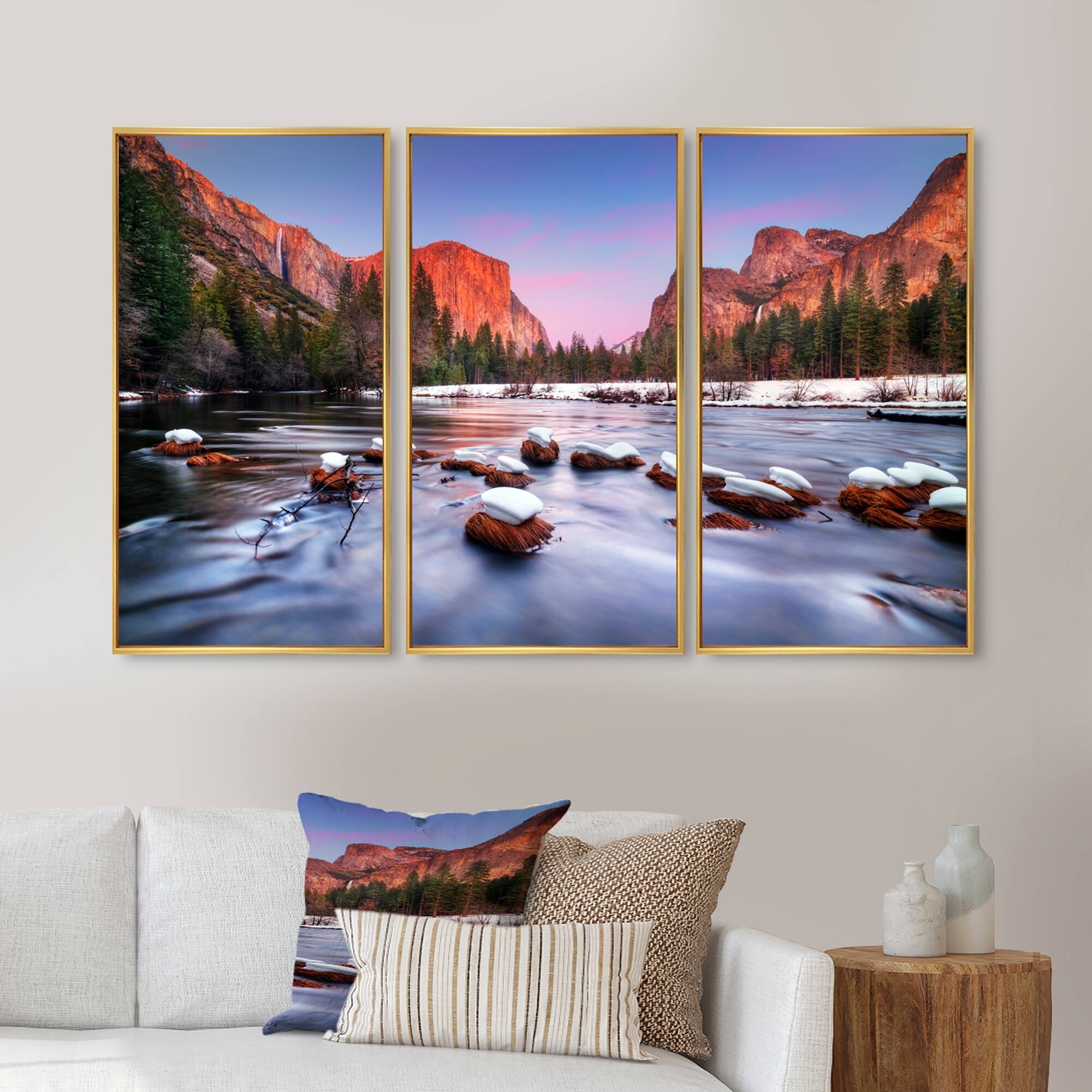 Designart "Yosemite Valley at Dusk" Landscape Framed Wall Decor Set of 3 - 4 Colors of Frames