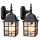 Outdoor Dusk to Dawn Wall Sconce, Water Ripple Wall Lantern, Black - 2PACK