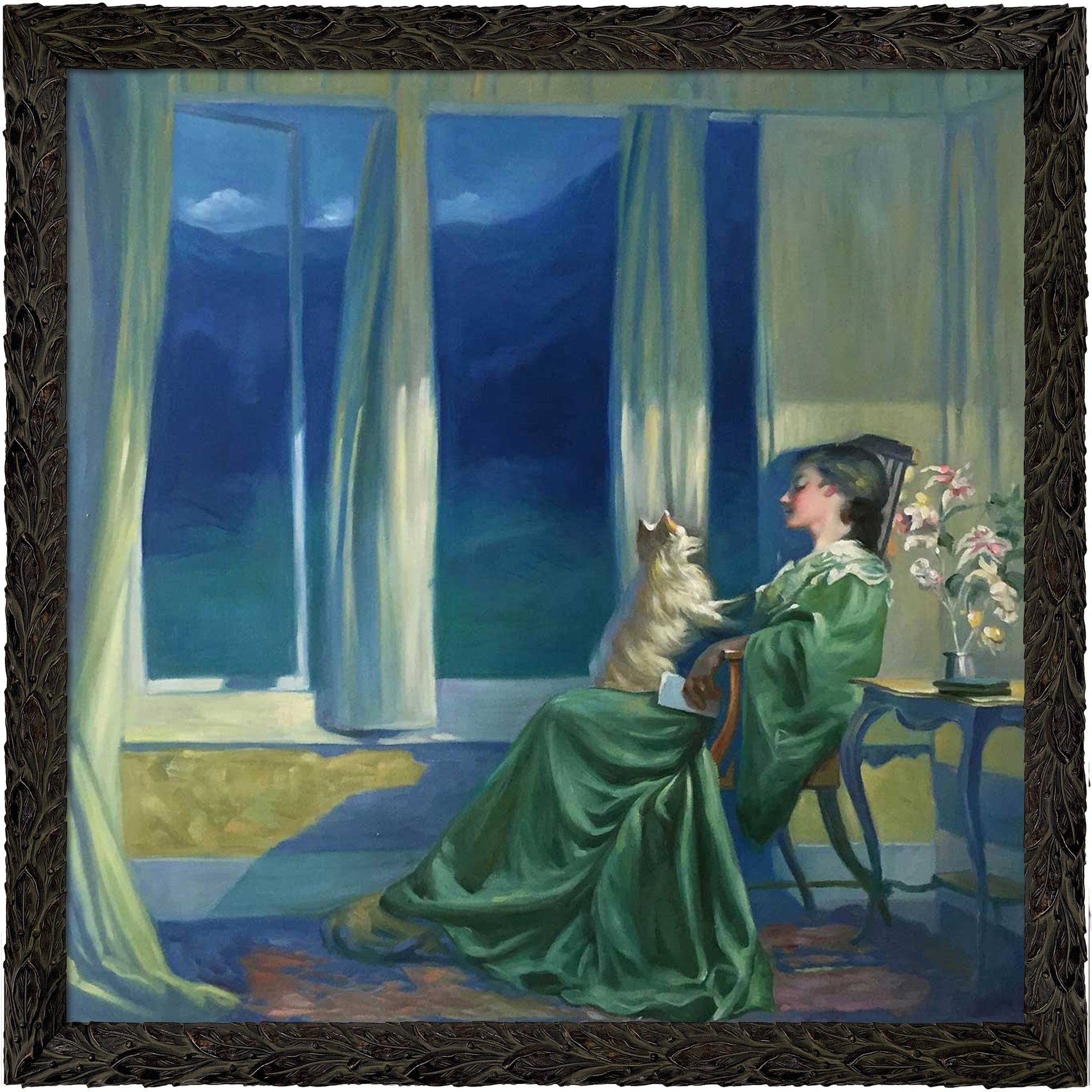 La Pastiche When the Blue Evening Slowly Falls with Feathered Ebony Frame, 27.24" x 27.24"