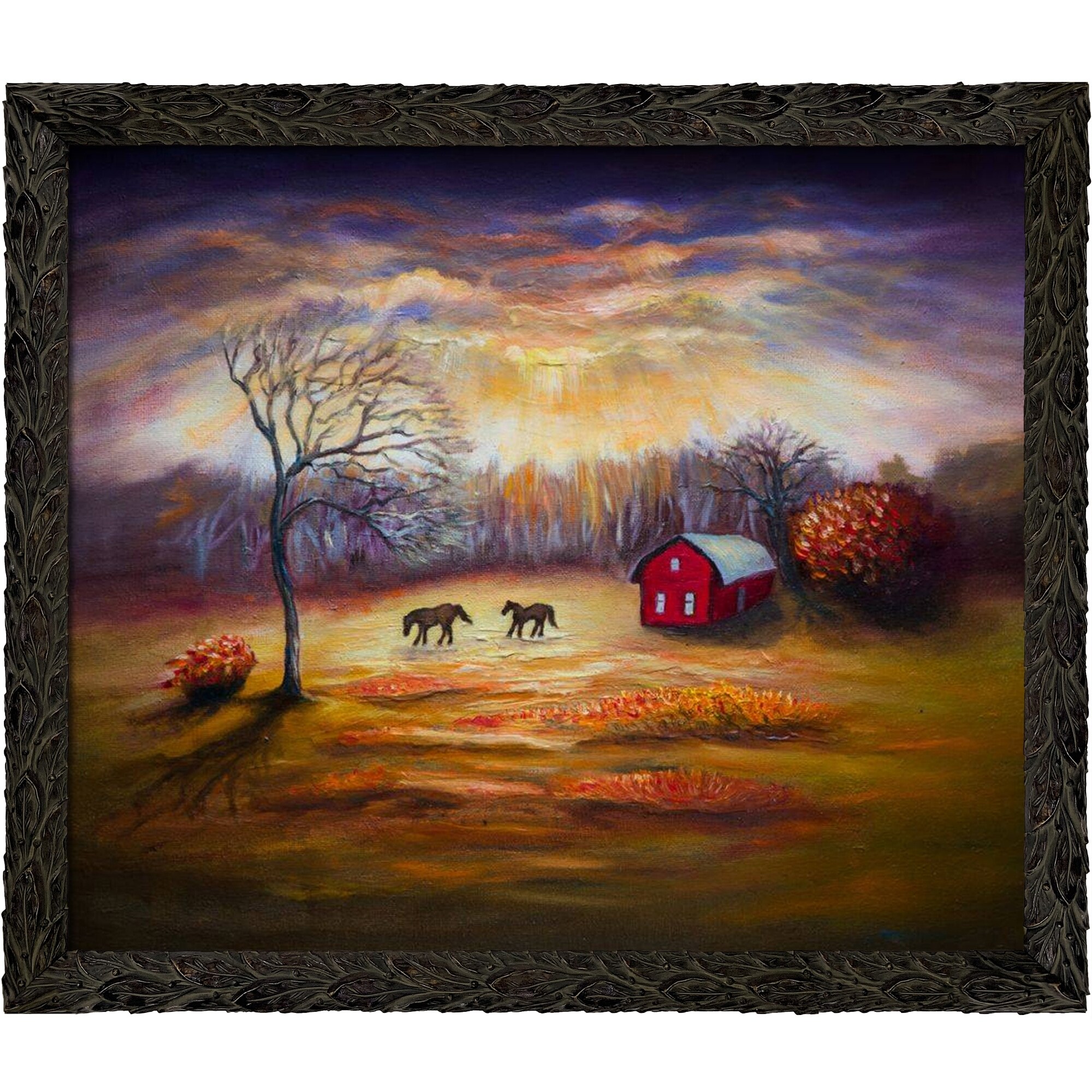 ArtistBe Country Scene with Feathered Ebony Frame, 23.24" x 27.24"