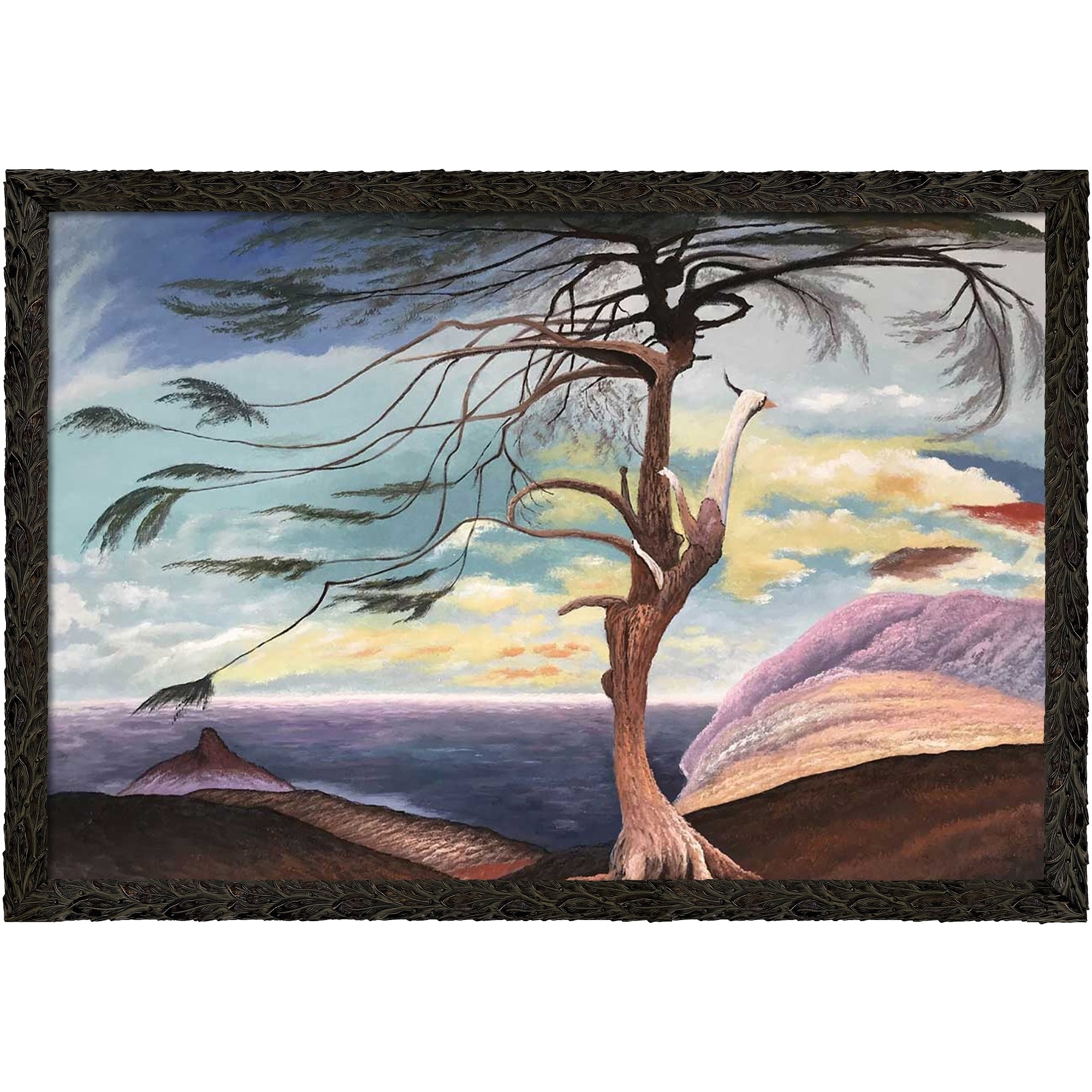 La Pastiche the Lonely Cedar with Feathered Ebony Frame, 27.24" x 39.24"
