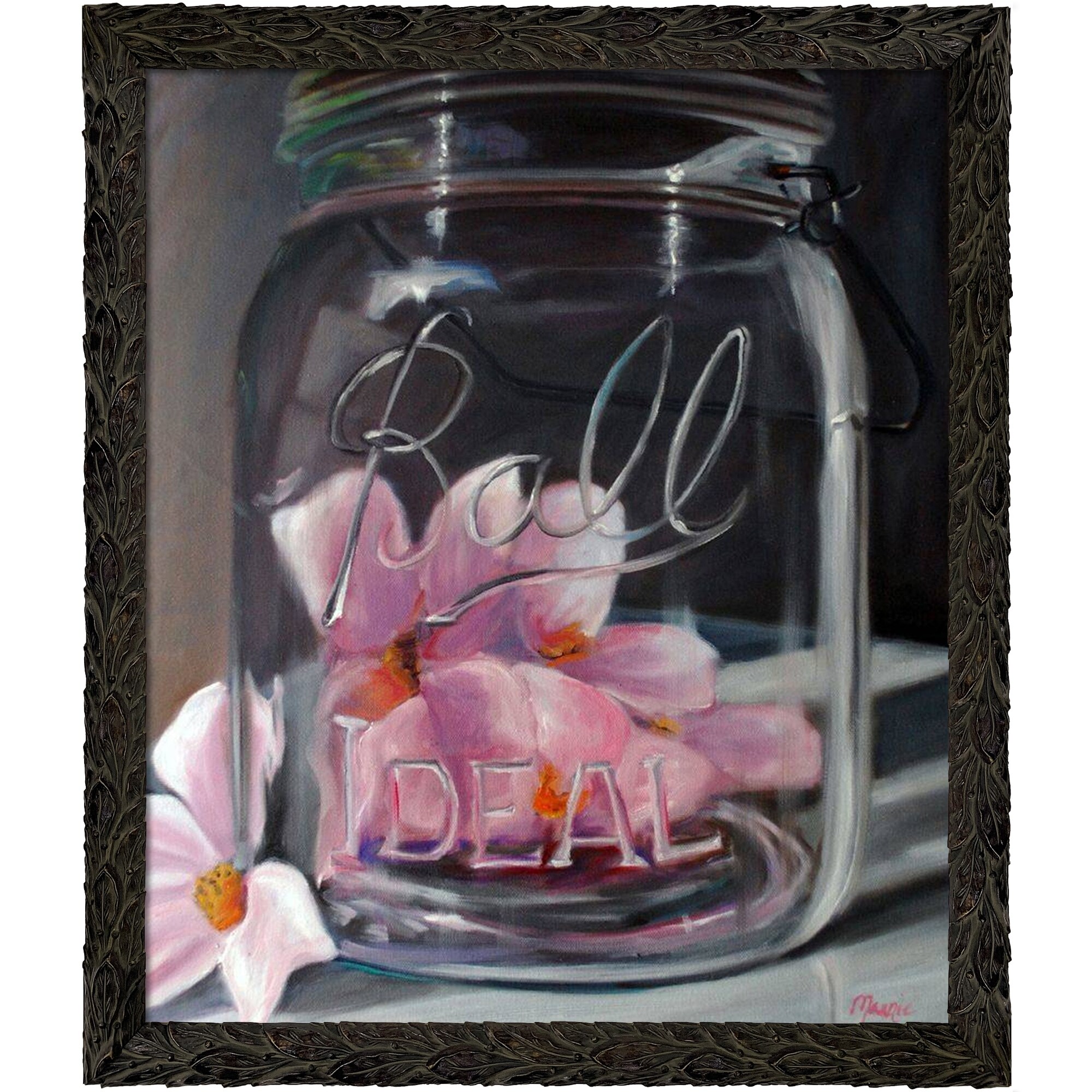 ArtistBe Spring in a Jar with Feathered Ebony Frame, 23.24" x 27.24"