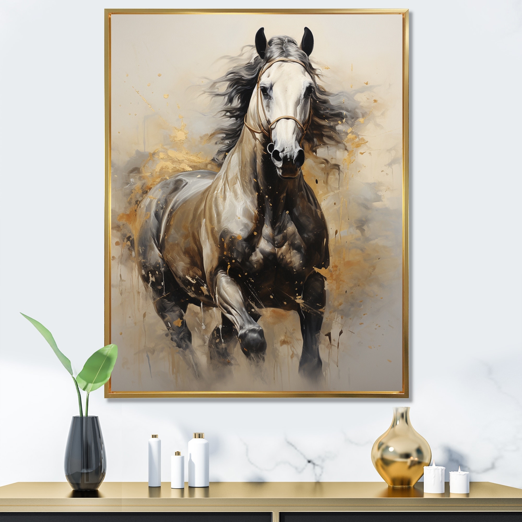 Designart "Beige Horse Golden Equestrian Pointillism" Animals Horse Framed Canvas Art Print