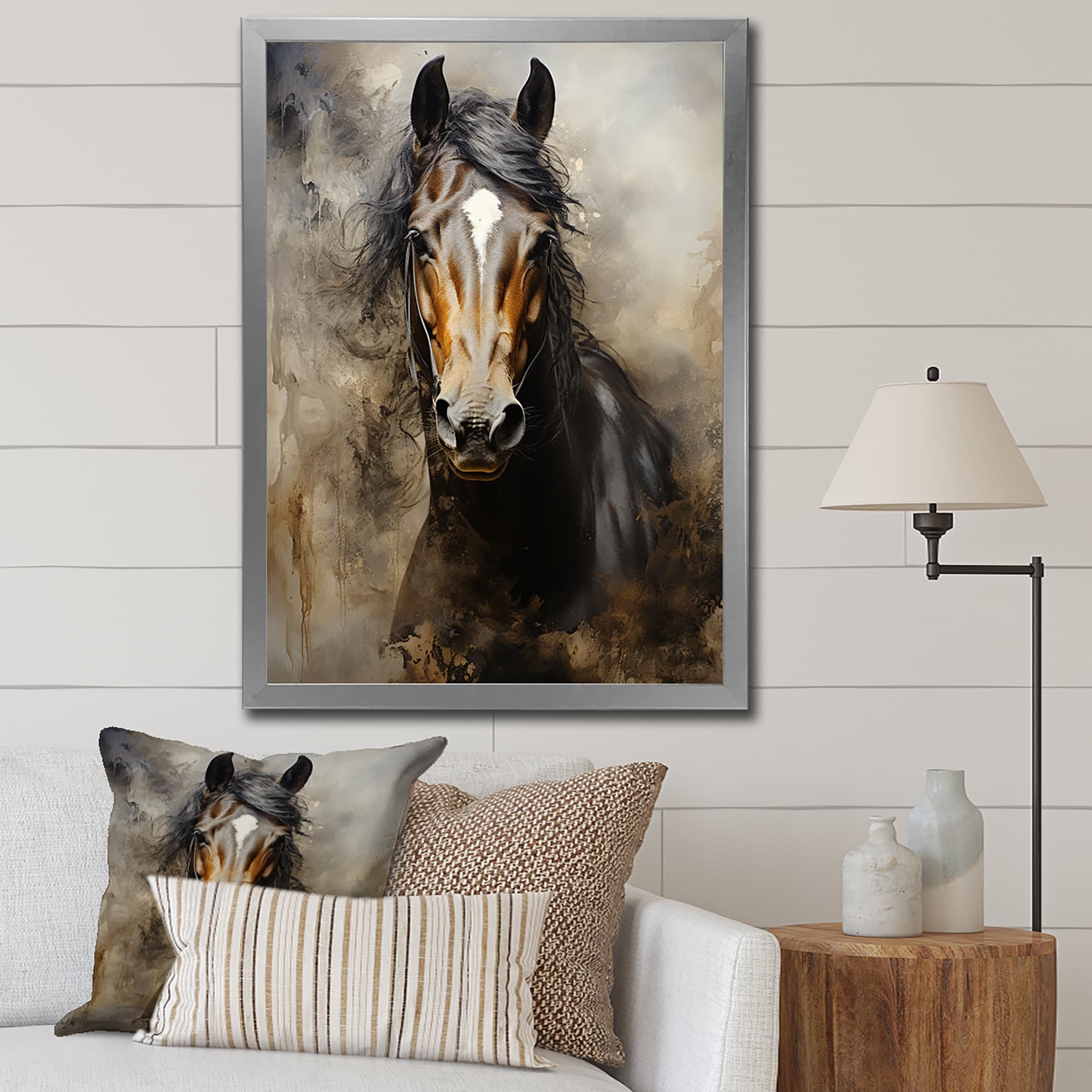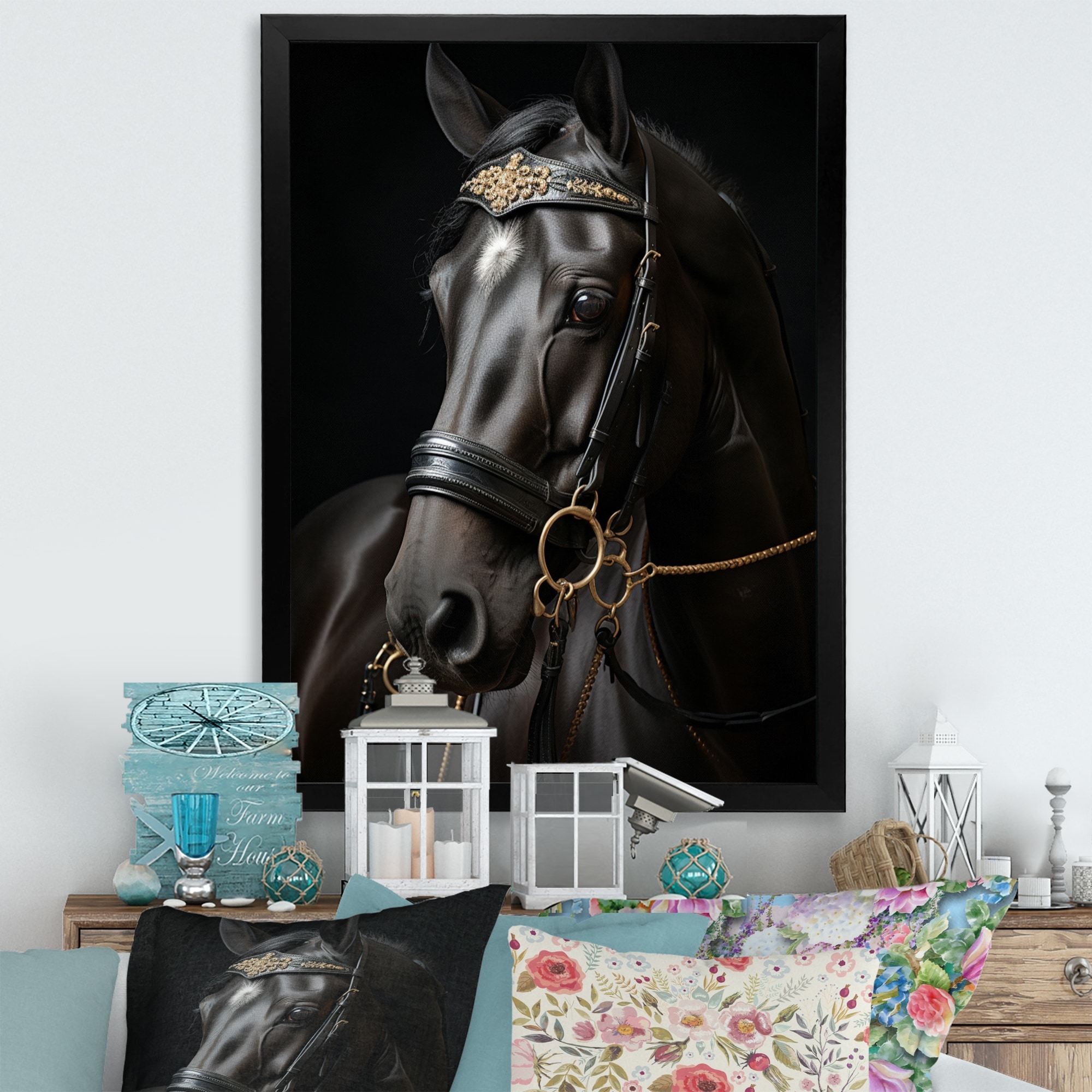 Designart "Black Gold Horse Golden Equestrian I" Animals Horse Framed Wall Art Living Room