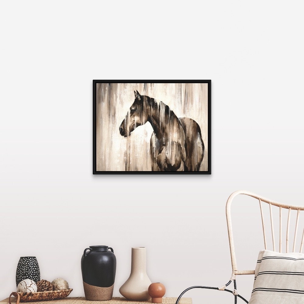 "Inquisitive Equestrian" Black Float Frame Canvas Art