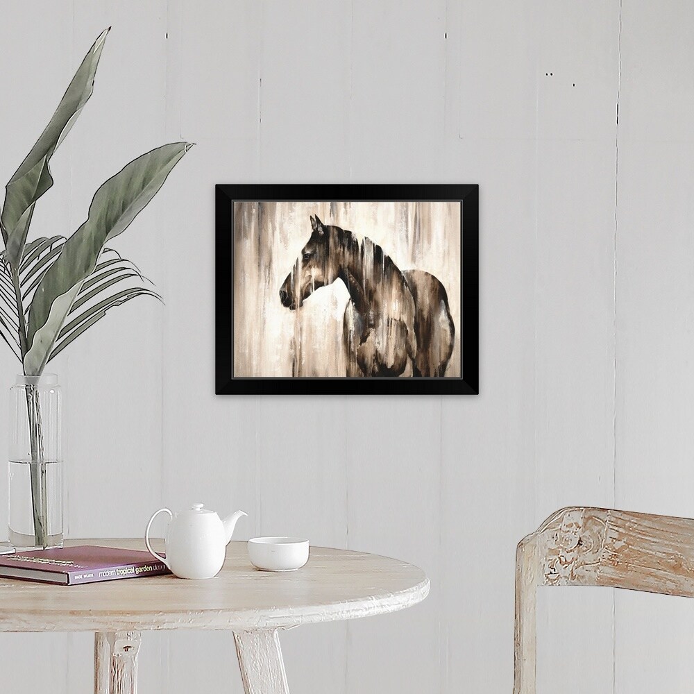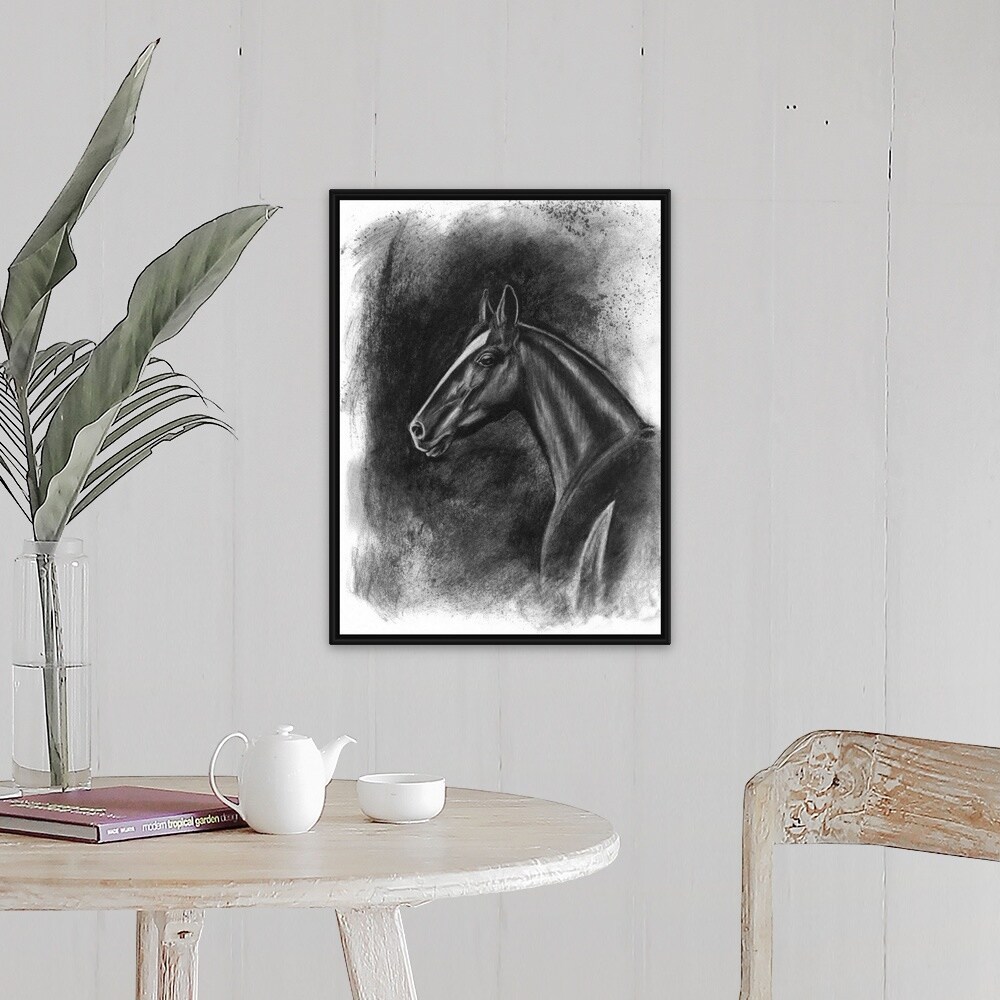 "Charcoal Equestrian Portrait II" Black Float Frame Canvas Art