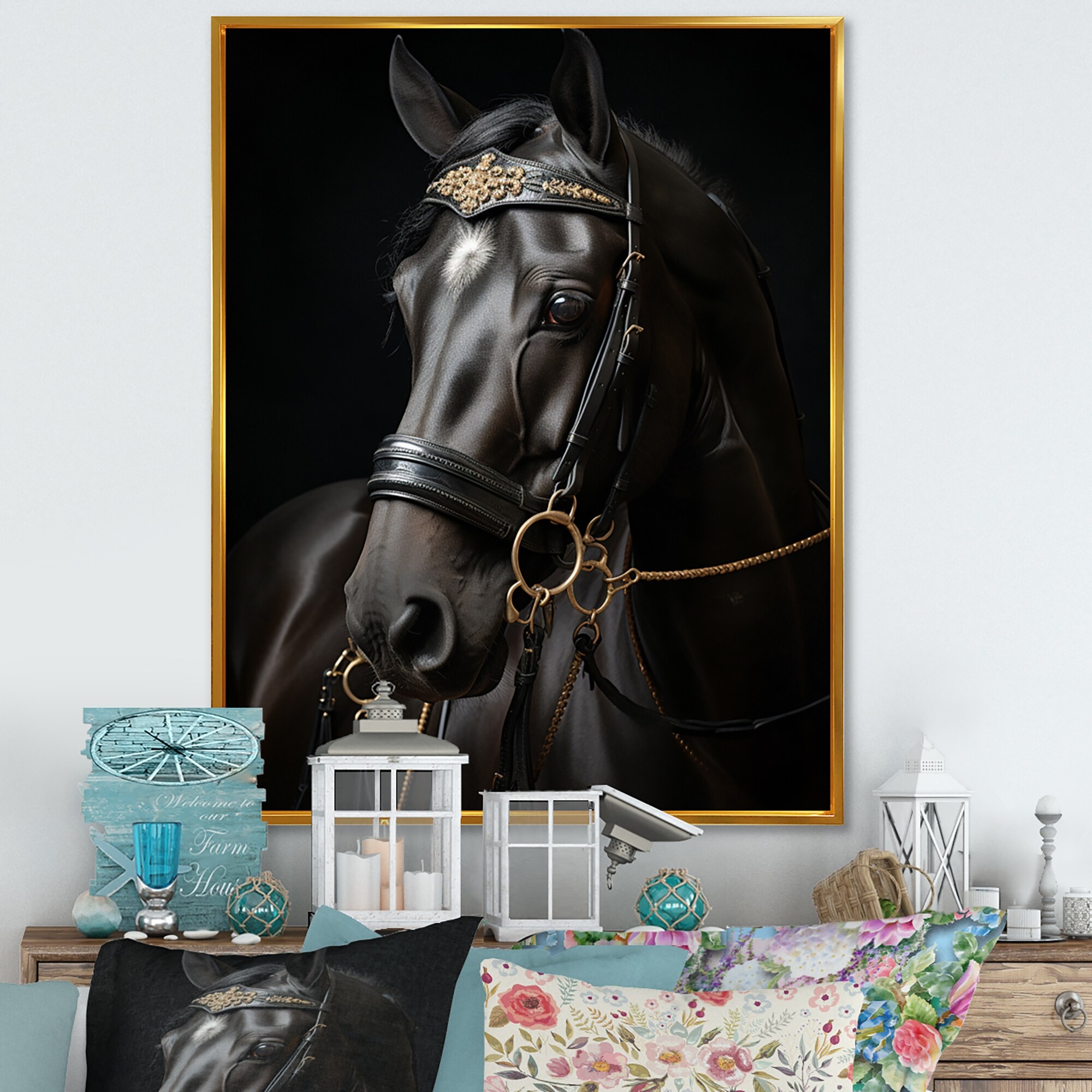 Designart "Black Gold Horse Golden Equestrian I" Animals Horse Framed Canvas Print