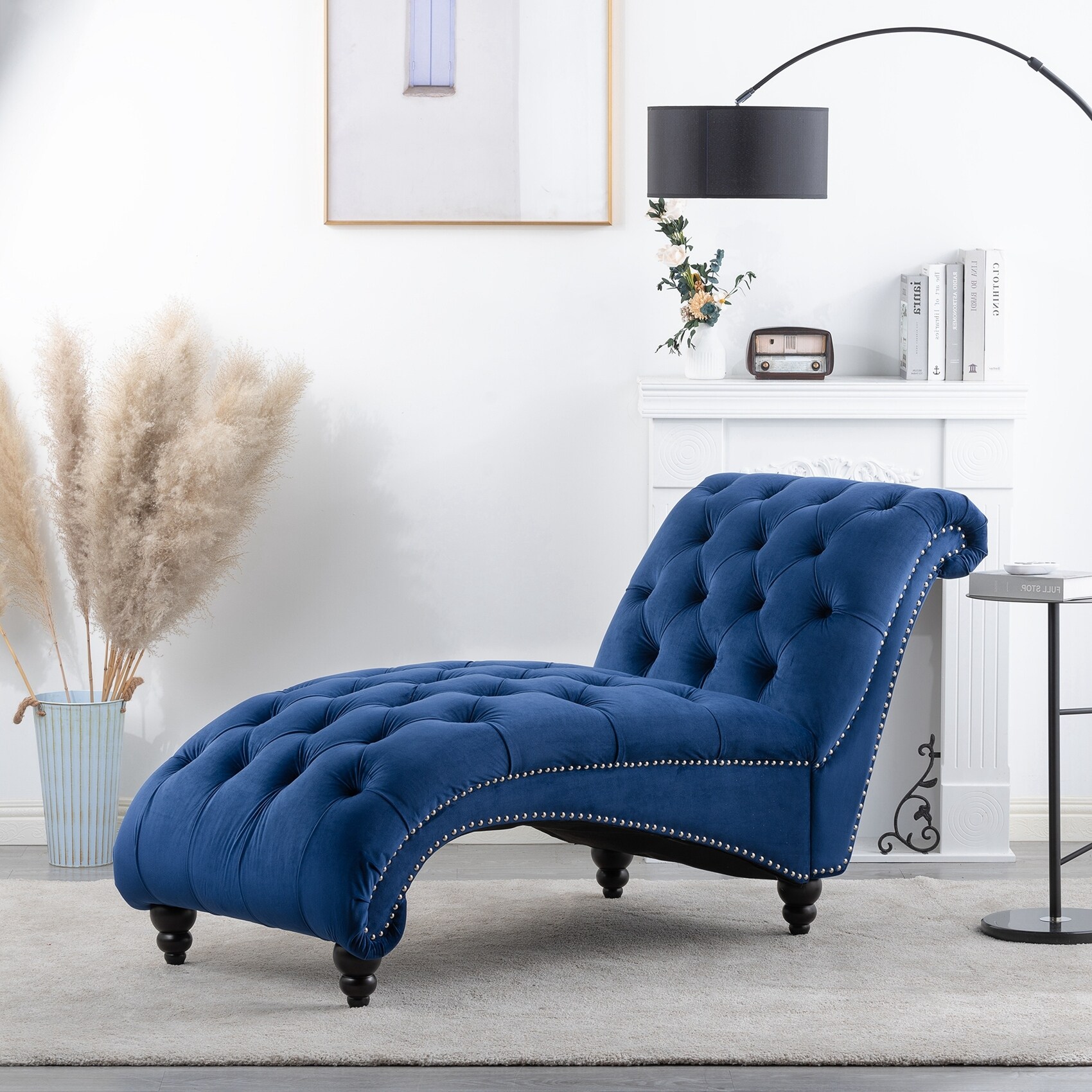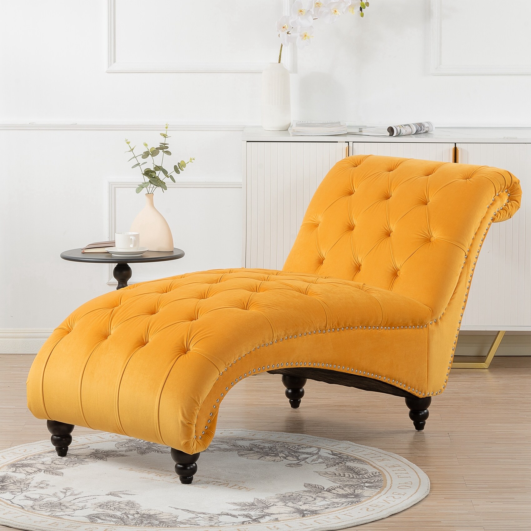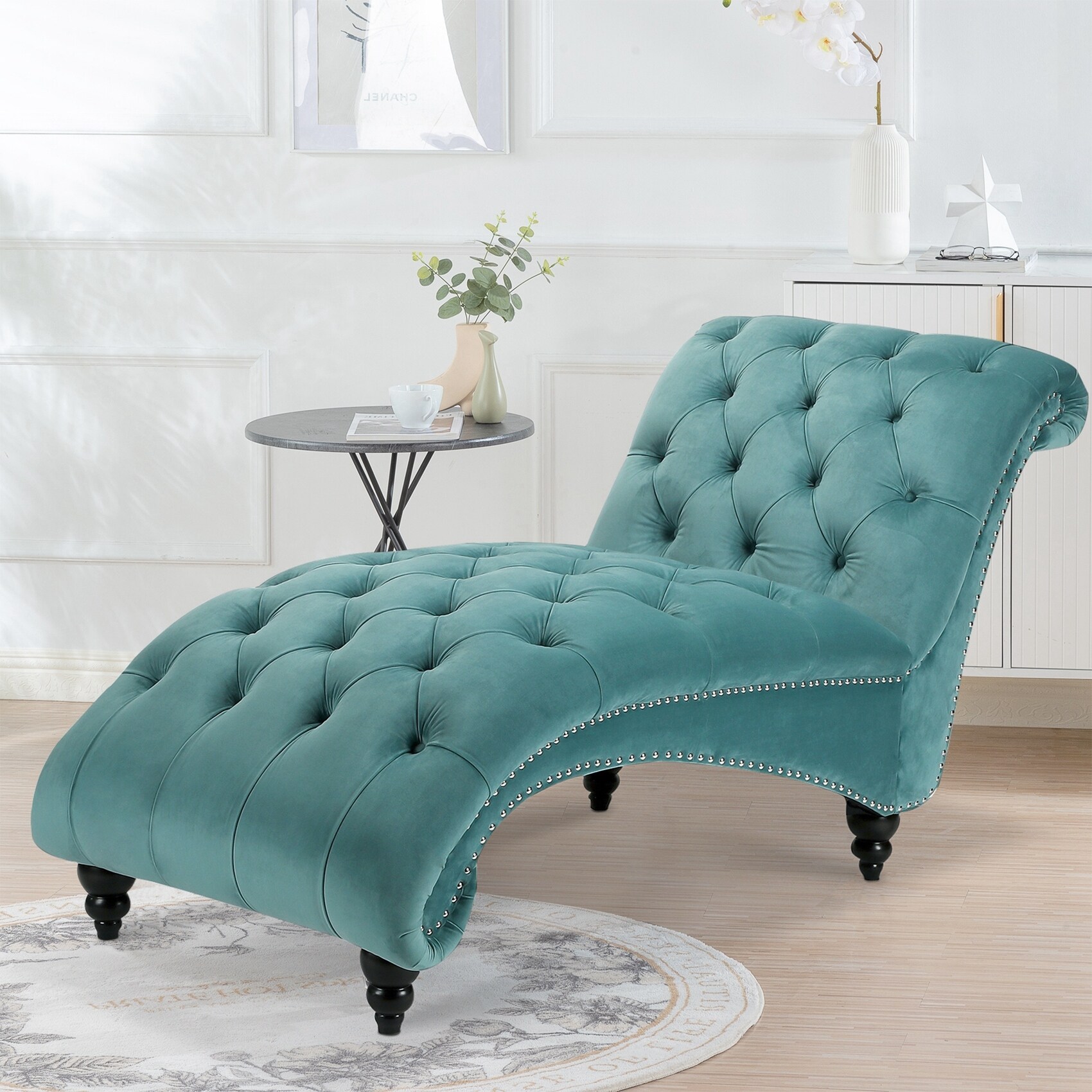 Armchair Velvet Fabric Upholstery Padded Seat with Rubberwood Legs and Nailhead Trim