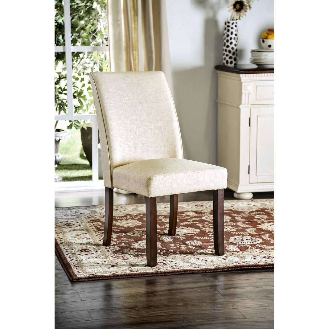 Classic Contemporary Ivory Fabric Set of 2 Chairs Kitchen Dining Chairs Furniture with Solid Wood Frame Cushion Seat Chairs