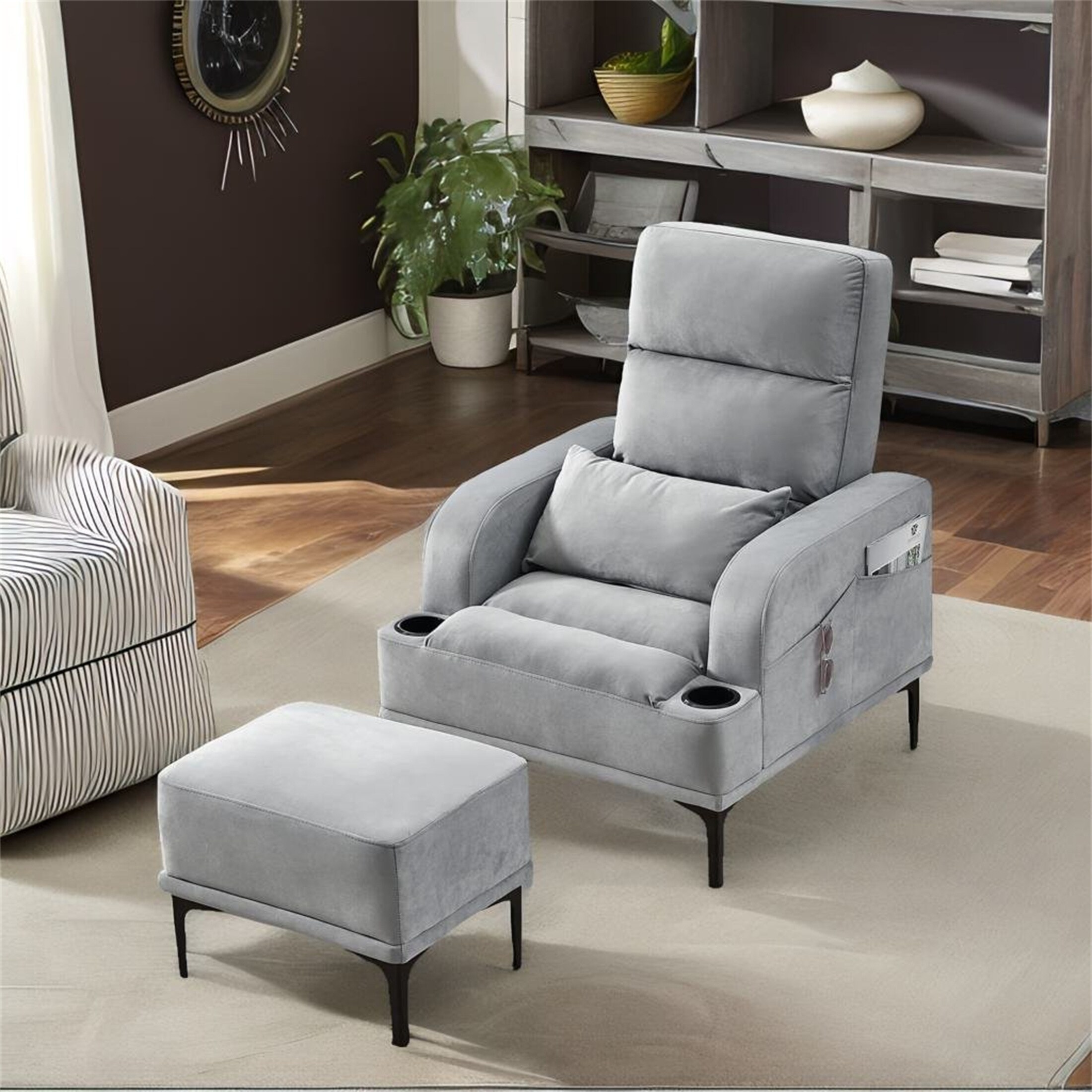 Velvet Fabric Armchair with Ottoman for Bedroom Living Room
