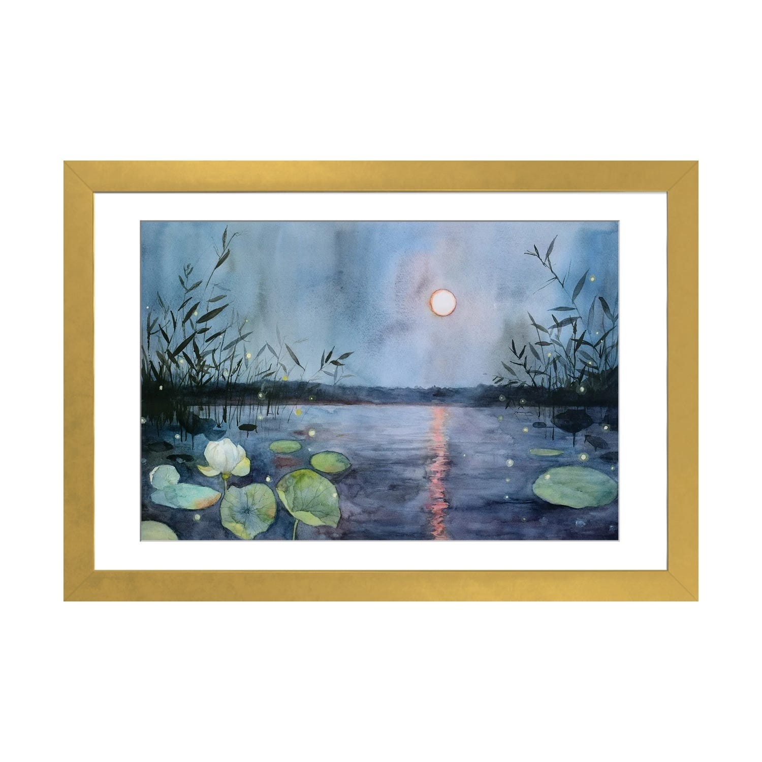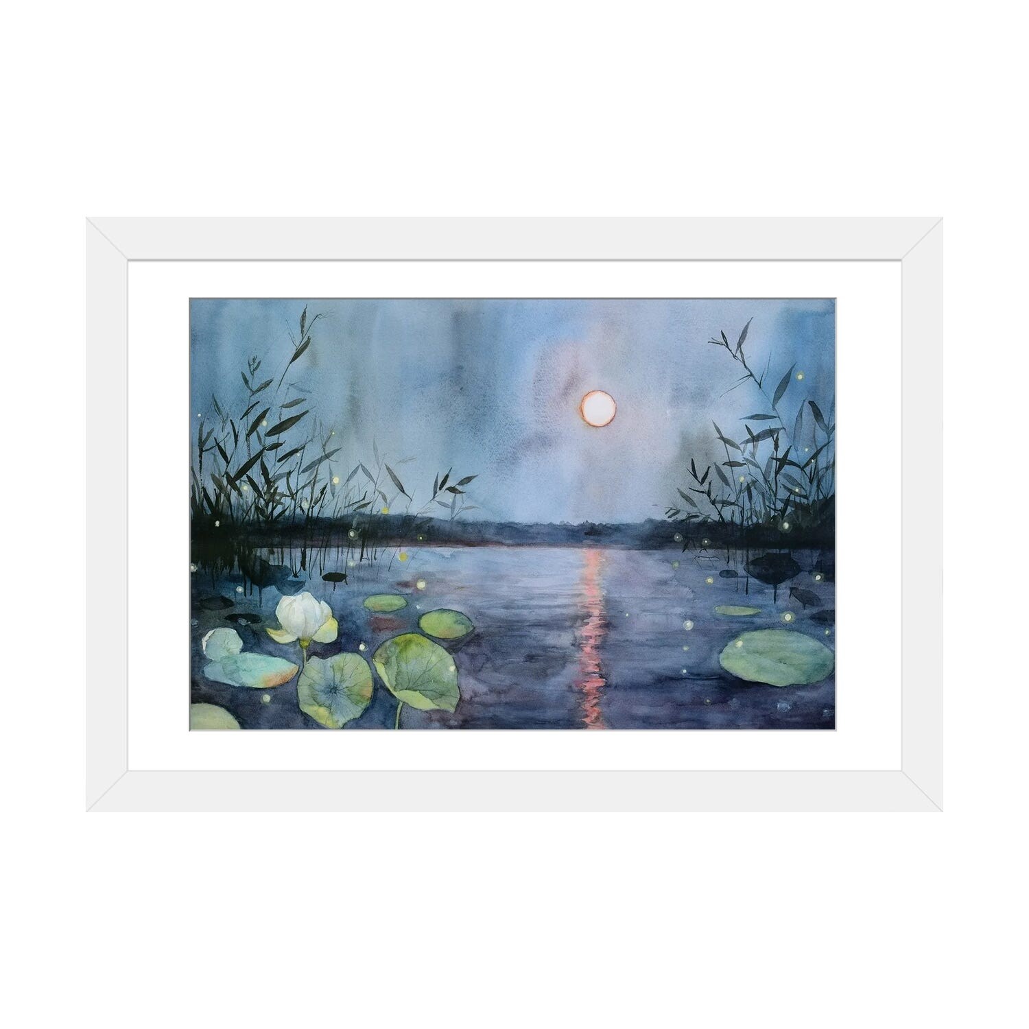iCanvas "Fireflies At Night on the Full Moon Lake, Moonlit Lake" by Violetta Boyadzhieva