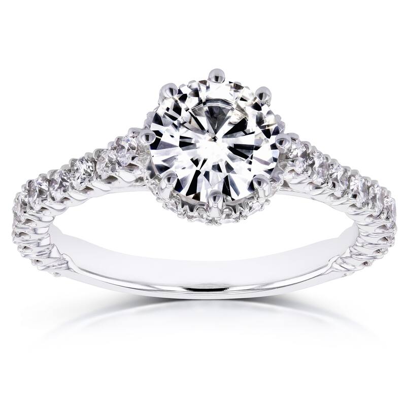 Annello by Kobelli 14k White Gold 8-prong 1 3/5ct TCW Forever One Moissanite and Diamond Engagement Ring