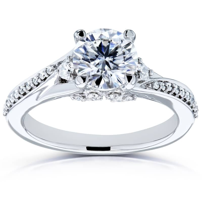 Annello by Kobelli 14k White Gold 1 1/4 Carat TGW Forever One Moissanite and Diamond Fancy Setting Bypass Engagement Ring