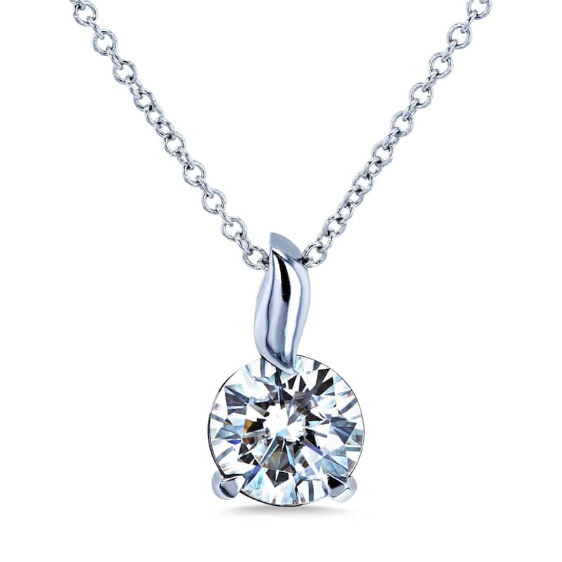 Annello by Kobelli 14k Gold Round 1 Carat Forever One Moissanite (6.5mm) Leaf Bail Solitaire 16 Inch Necklace (DEF/VS)