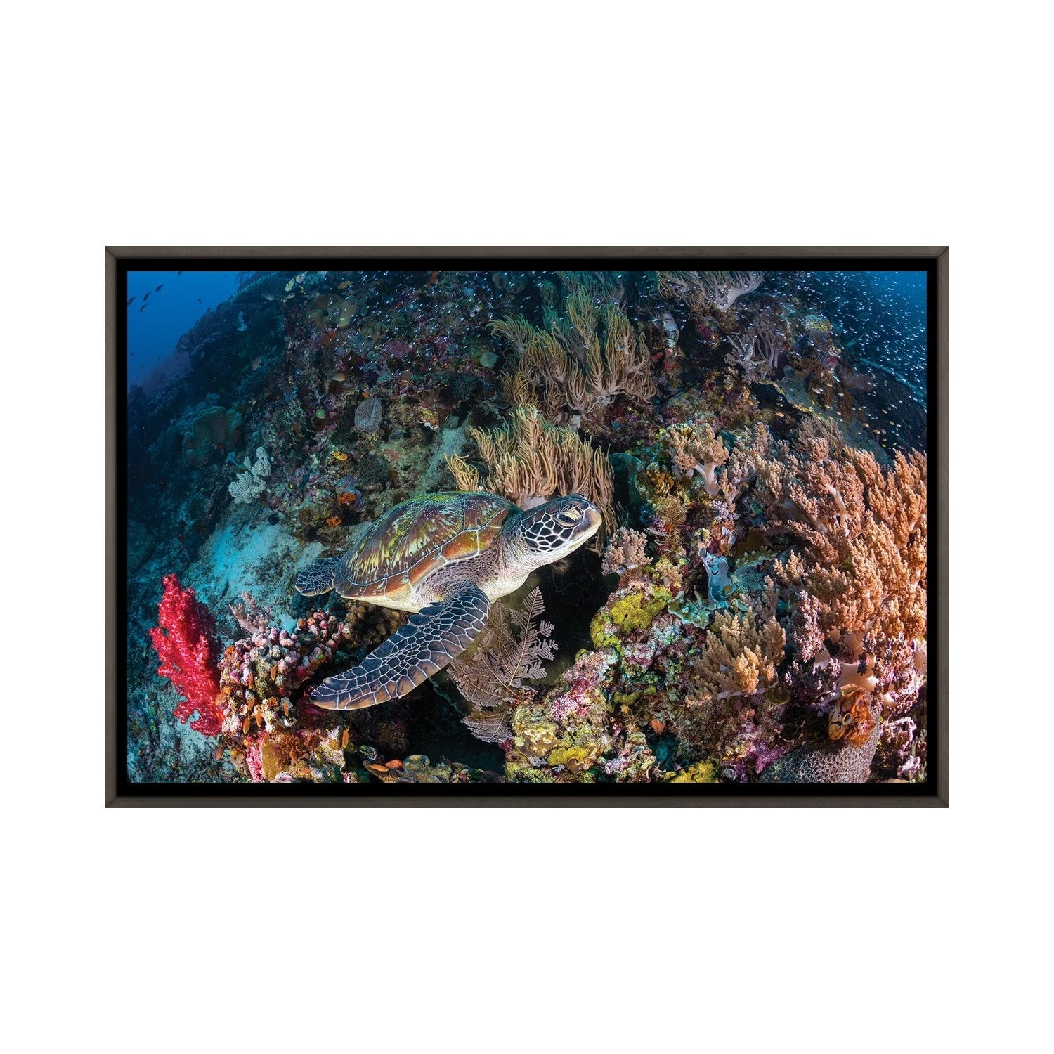 iCanvas "Coral Garden And Green Turtle" by Barathieu Gabriel Framed