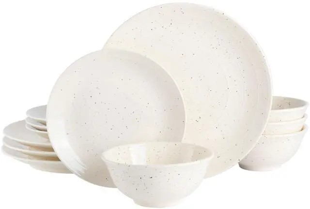 Gibson Elite Ramapo 12 Piece Stoneware Dinnerware Set in White Speckle