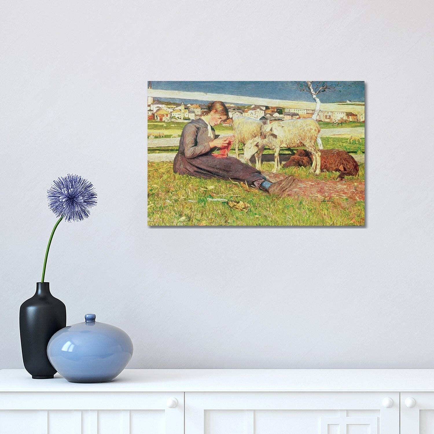 iCanvas "A Girl Knitting, 1888" by Giovanni Segantini Canvas Print