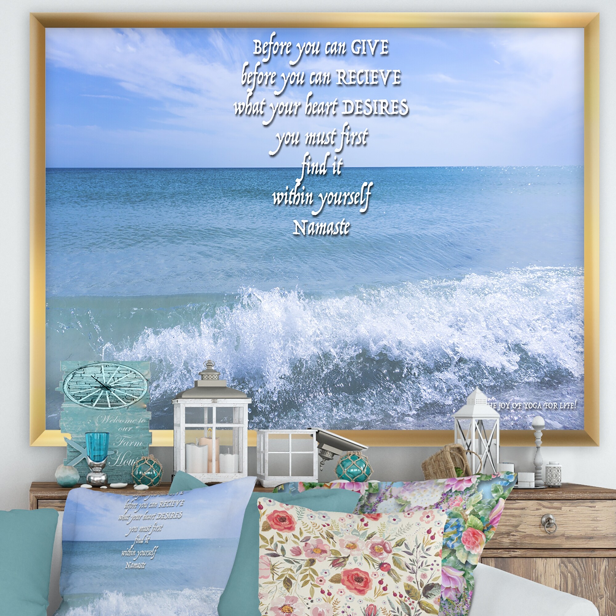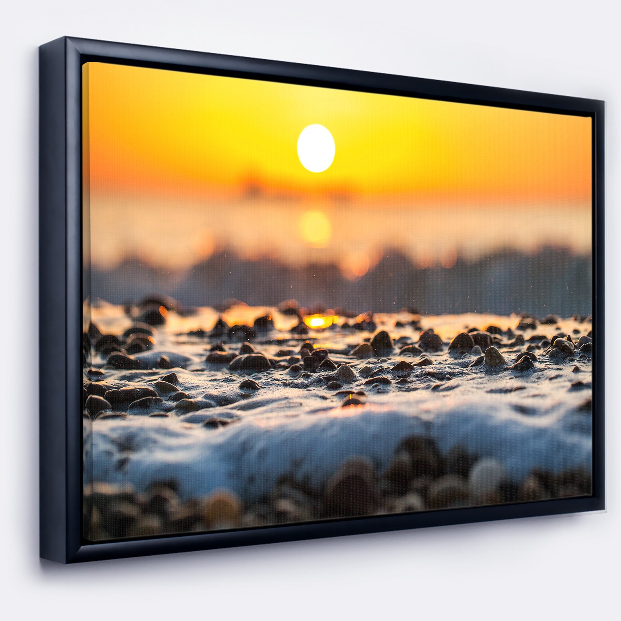 Designart "Sunrise Giving Color for Sea Waters" Seascape Framed Canvas Art Print