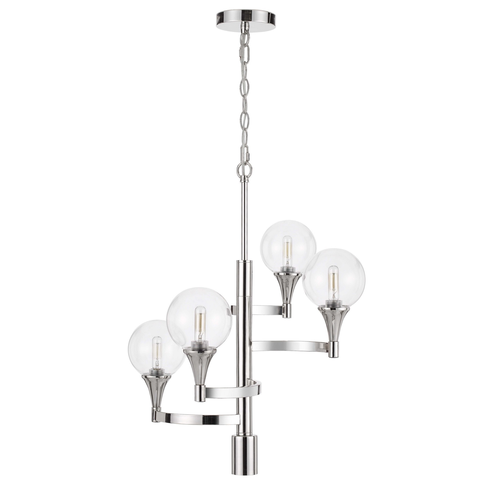 Chandelier with 4 Globe Glass Shades and Cone Design Holders, Chrome