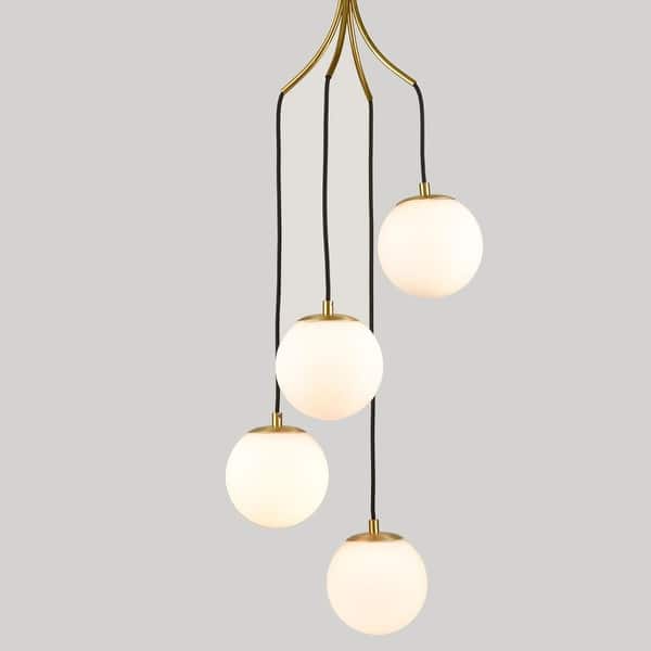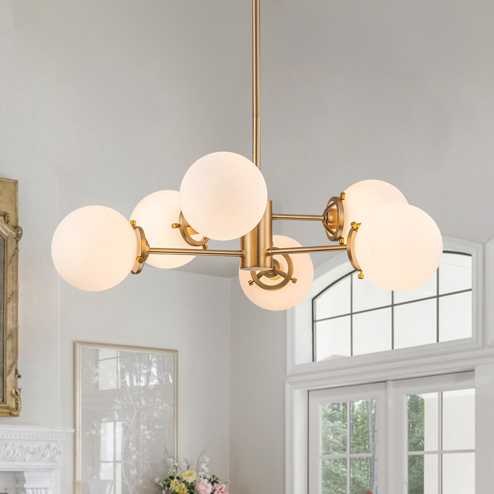 Siya Mid-century Modern Gold Chandelier 5-light Frosted Globe Glass Lights for Dining Room - D 26.5"x H 32"